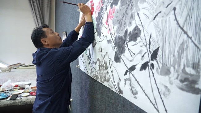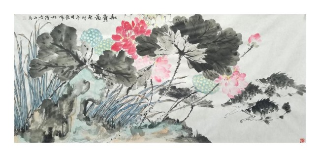 济南不仅以泉水闻名遐迩,作为市花的荷花更增添了几分婉约。张辉老师认为,济南才女李清照笔下“误入藕花深处”的意境,与《爱莲说》中的“出淤泥而不染”的君子之姿不谋而合,“荷”元素不但出现在济南市的“泉荷奖”中,荷花也成为了他在艺术生涯中情有独钟的绘画题材。