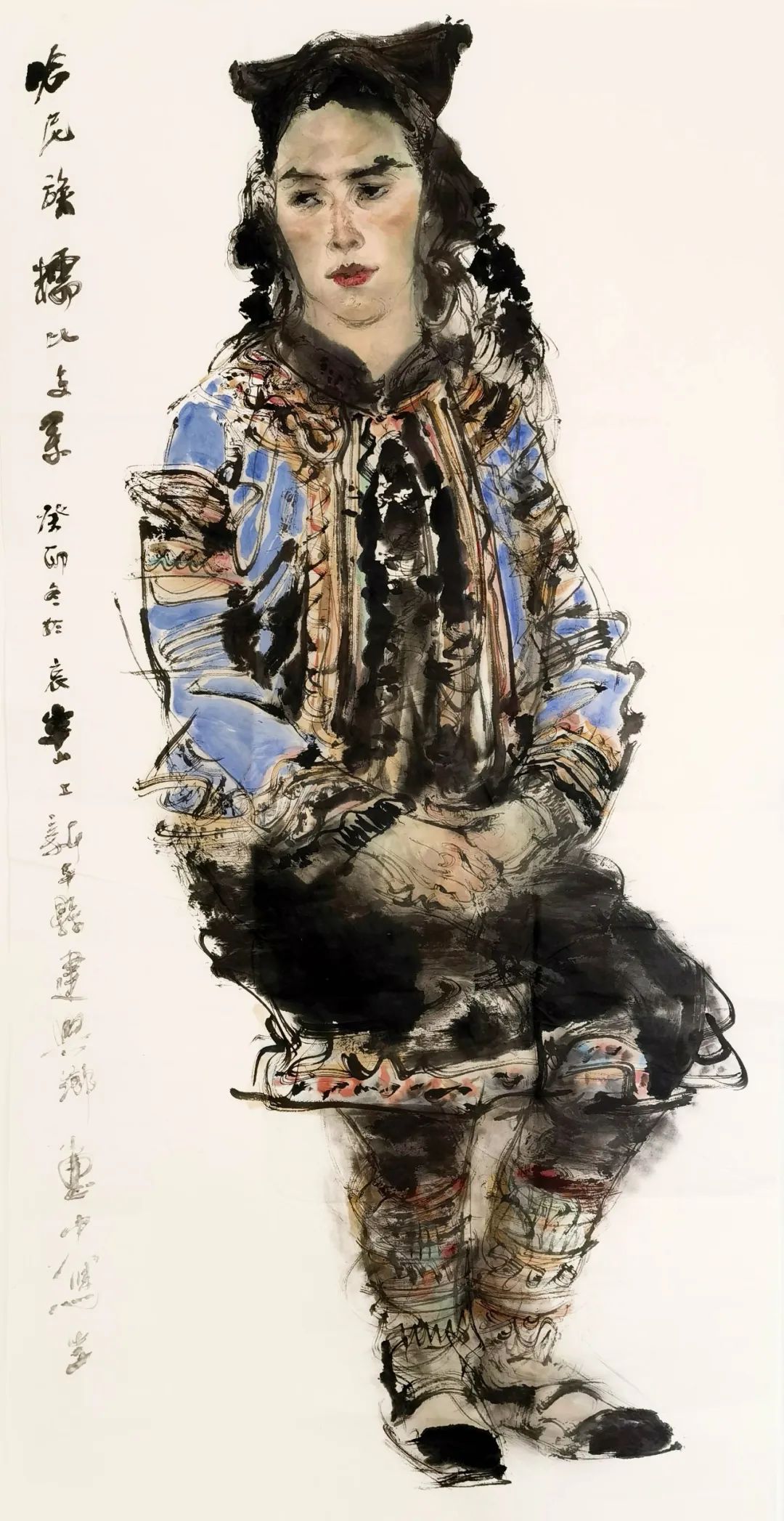 云南哈妮族女青年 水墨人物写生