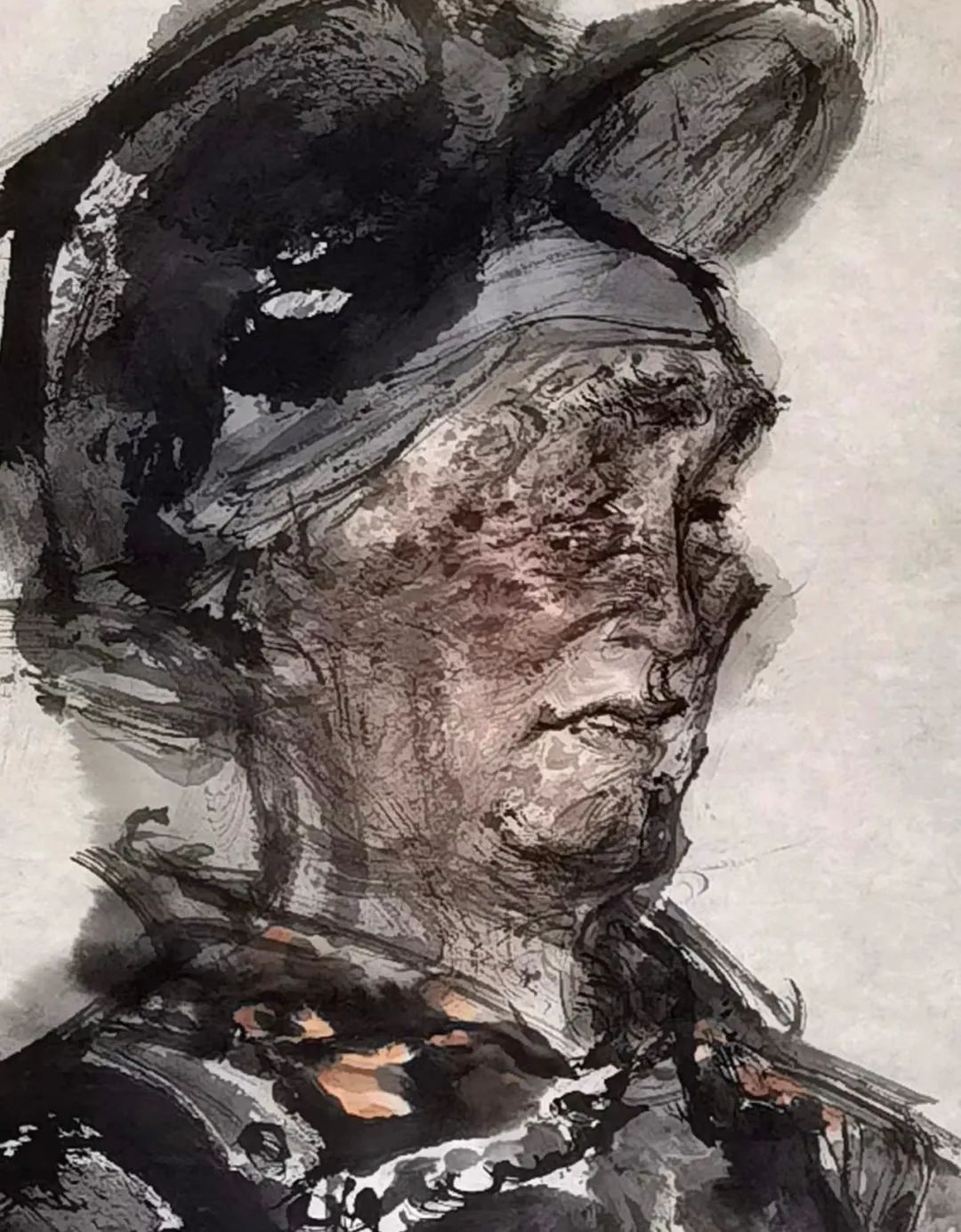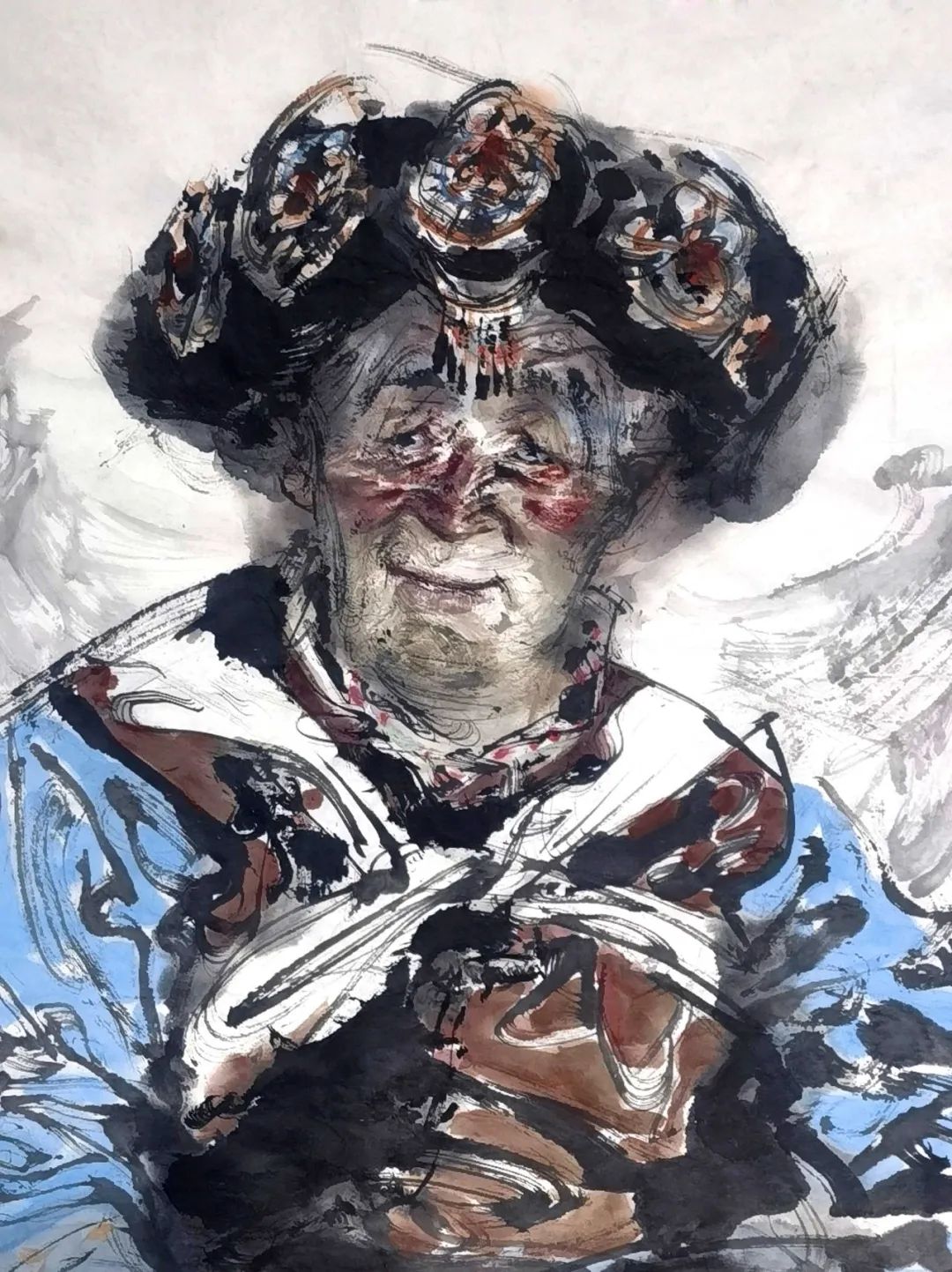 云南白族老人 水墨人物写生