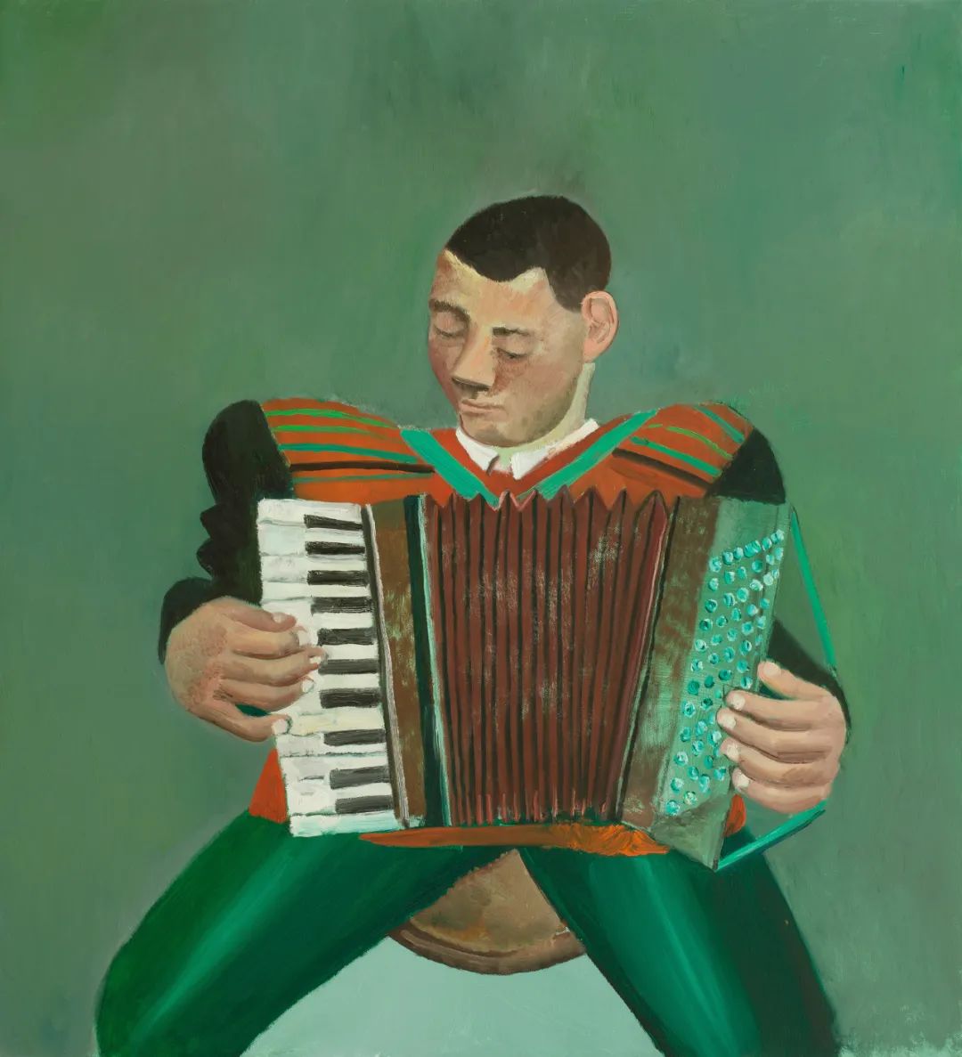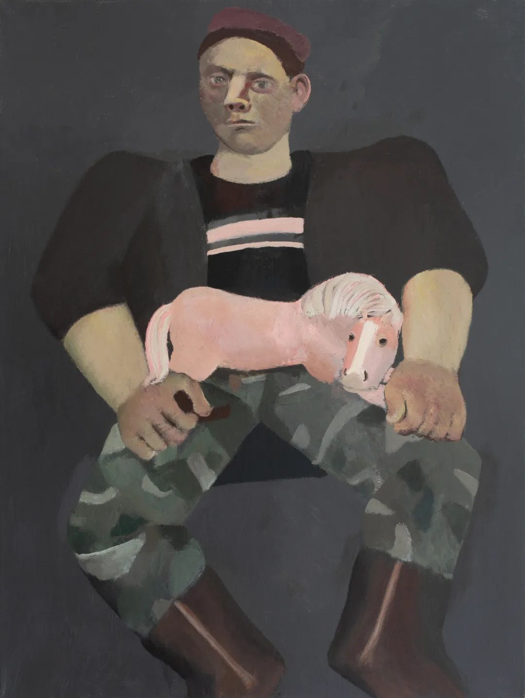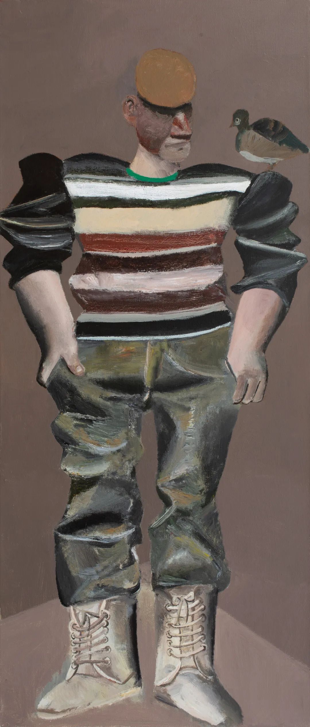 对培智而言,个体具象记忆通过平实笔触的不断外化,显现出创作者不依赖于技术概念自由进入到媒介表现之中,他从技术的优越感中不断得以解脱,作品中的人物形象成为他观照自我映射时代精神的镜子,而某些看似特定的人物形象便是他洞悉人物所处时代和空间的语义面貌。可以说,培智的绘画技术对色彩和视觉价值范围的选择非常缜密,在人与物的形态之间及光谱中创造出最具观感的形象,通过主观裁剪和有限的色域选择,使人与物呈现出特别的情绪肖像,进而将人物塑造成为感知本质的实。他关注特定的形式如何触发更广泛的主题意义,特别是在视觉本体更为强调由表及里、由貌至神的维度感悟。其绘画涤荡着鲜活的生活气息,将朴素人物的生活际遇表现为对人性的尊重,这些足以说明创作者其原点在于向内的精神审视。所以培智的绘画挣脱了所谓传统的裹挟,避开了时尚的轻薄与快时尚的趋利,绘画中深藏着醇厚的人文精神。