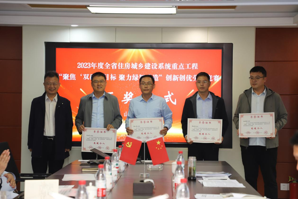 会上,为德州市获得2023年度全省住房城乡建设系统重点工程“聚焦‘双碳’目标 聚力绿智建造”创新创优劳动竞赛荣誉的先进集体和个人进行了颁奖。