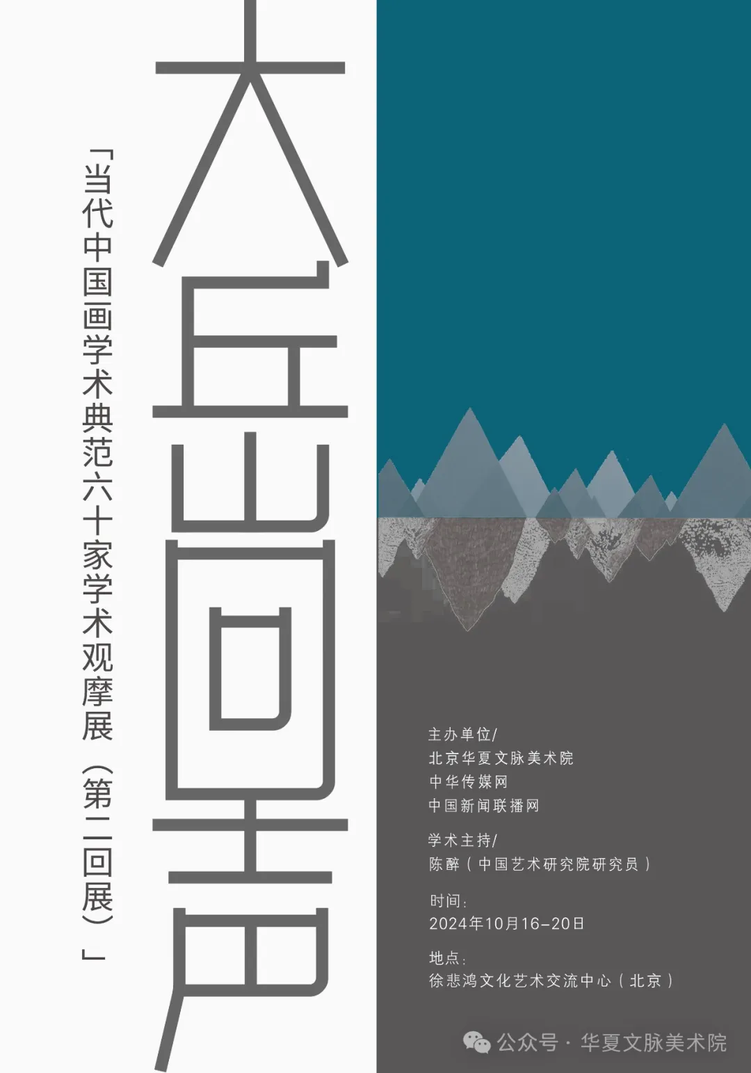 当代中国画实力派名家作为中国美术的砥柱中坚,是当代美术发展历程中不可忽视的重要力量,他们见证了中国美术发展的历史阶段,共同谱写了中国美术的发展篇章,毋庸置疑可称为中国艺术的时代高峰。为展示当代艺术大家的艺术风采,传承他们的为人、从艺精神,北京华夏文脉美术院拟举办“大岳回声——当代中国画学术典范六十家学术观摩展”(第二回展),展示和梳理当代艺术大家在艺术创作方面所取得的成就。