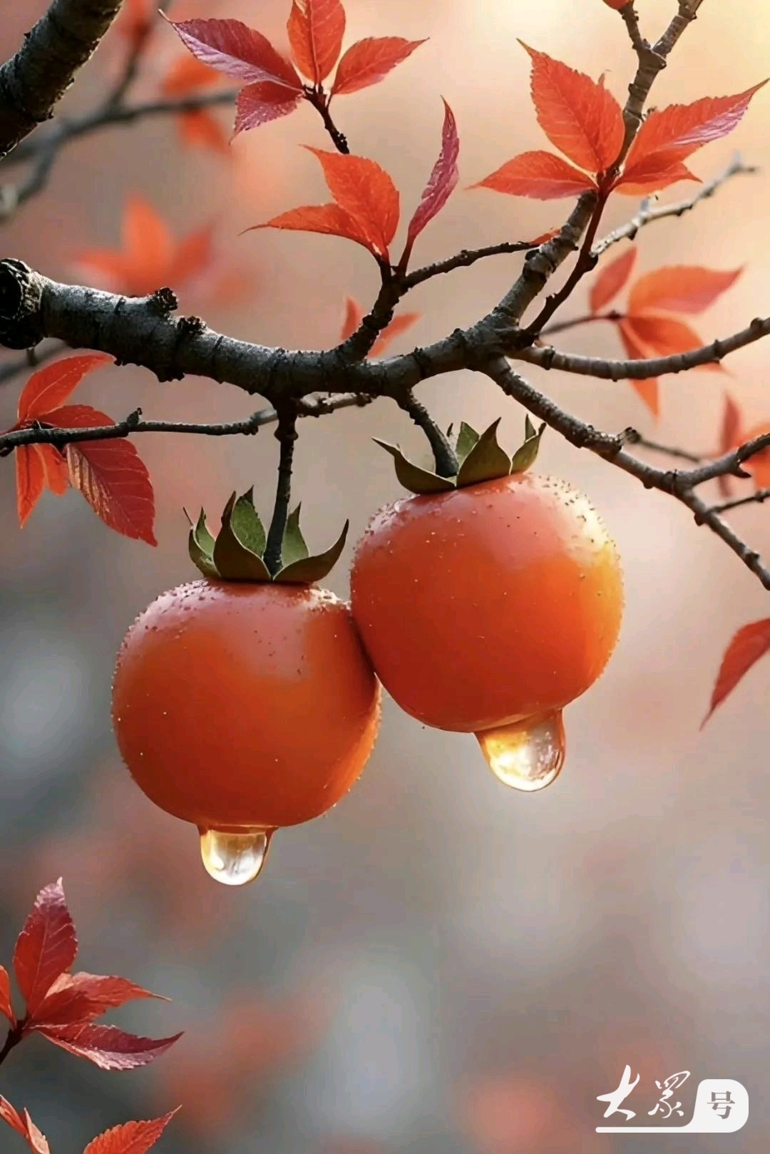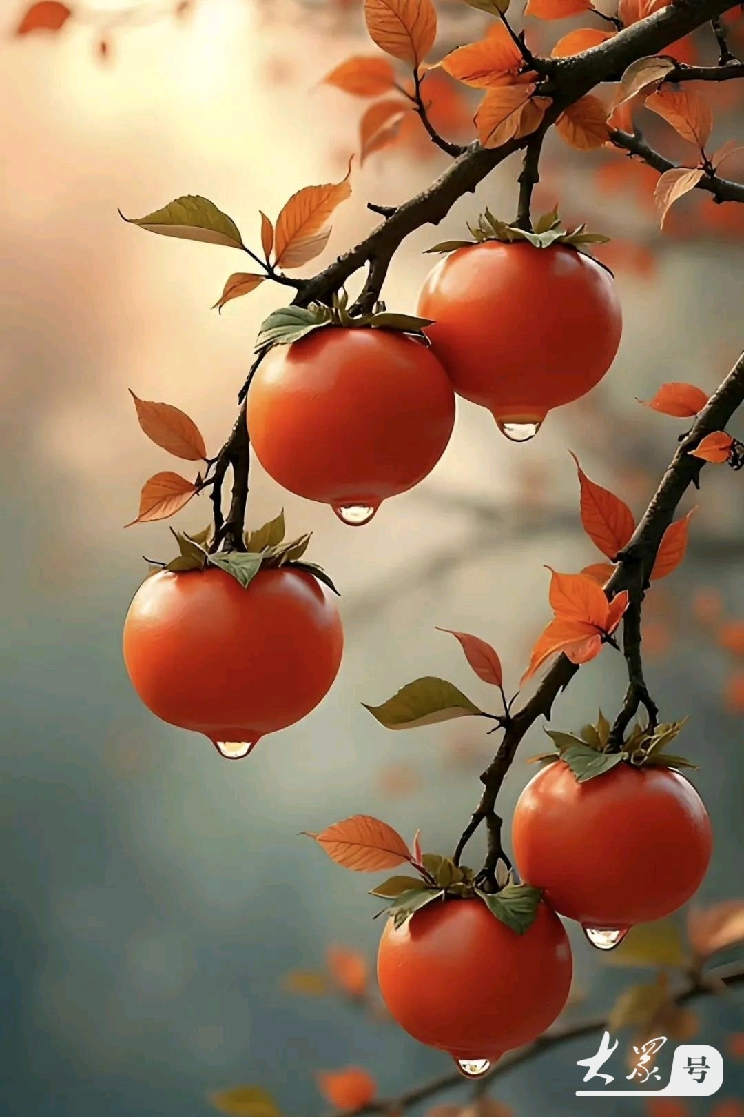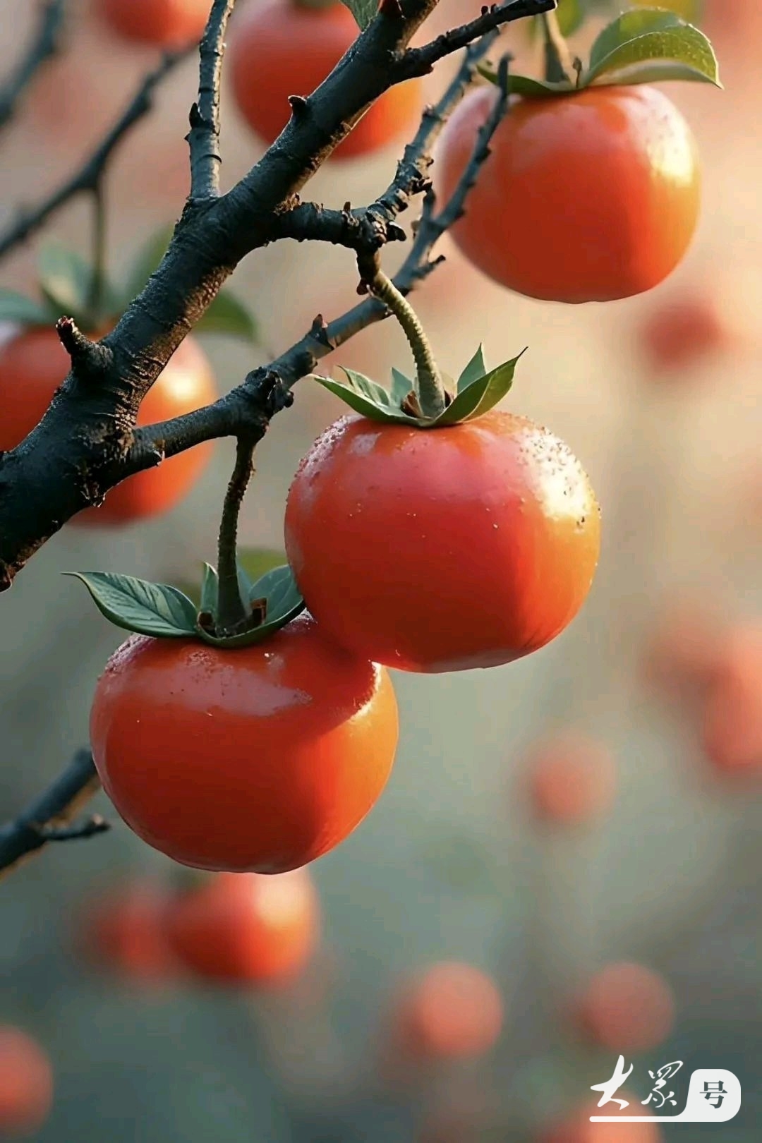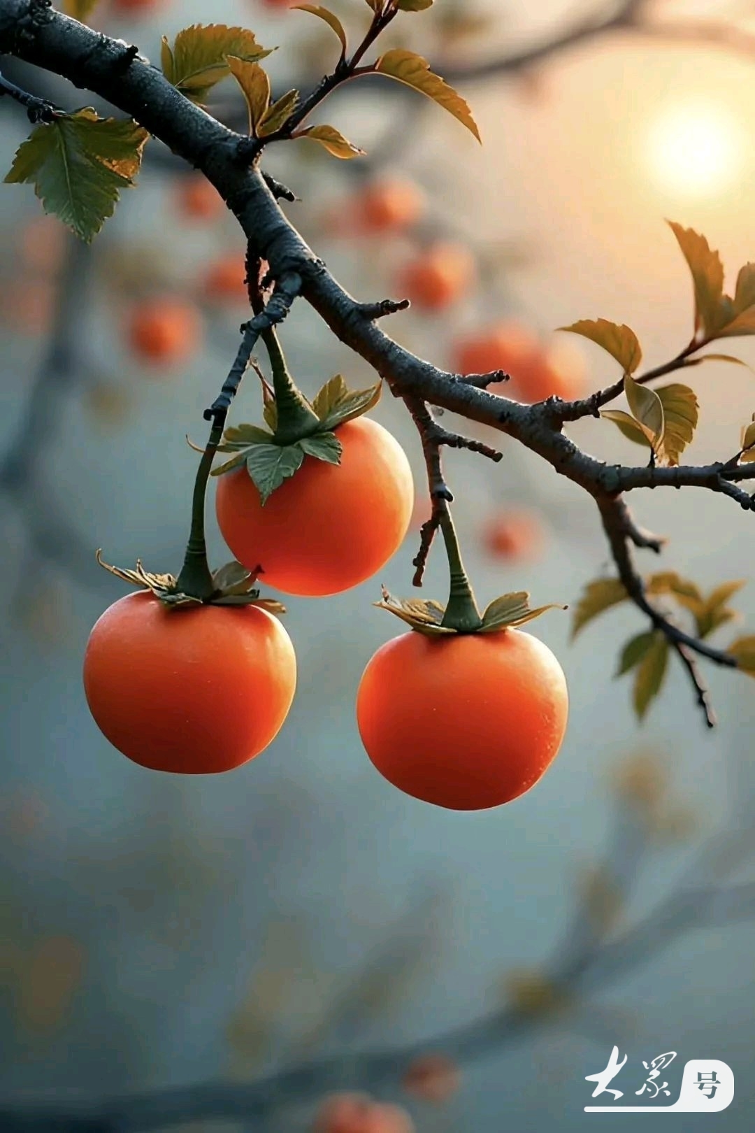 又见了一次满树的柿子红,虽然短短的几分钟,就在此时仿佛看到了四代人一同在柿子树下晒柿饼的情景。