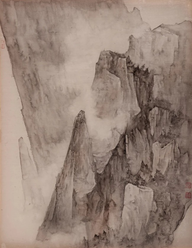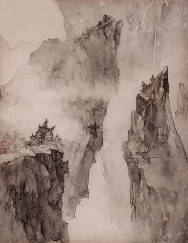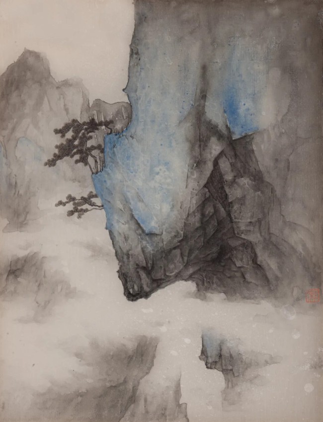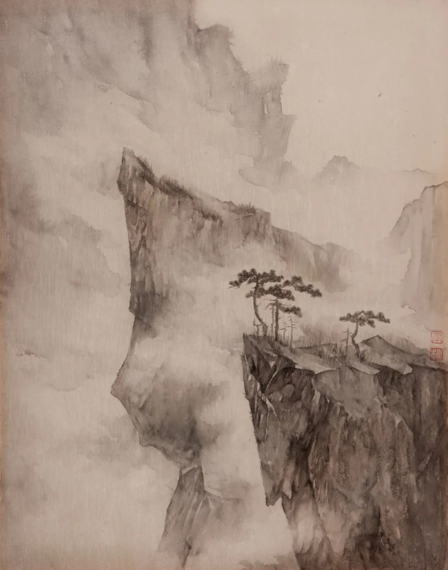 《亘古--高崖》50cmx40cm 绢本水墨 2022年