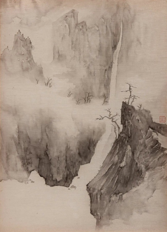 《亘古--幽谷》40cmx30cm 绢本水墨 2022年