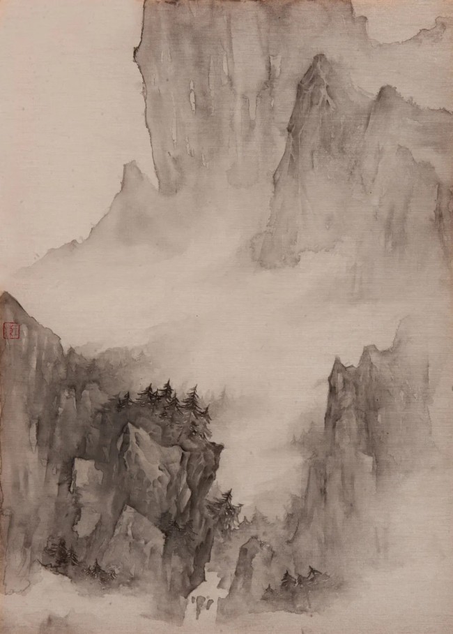 《亘古--烟岚》50cmx40cm 绢本水墨 2022年
