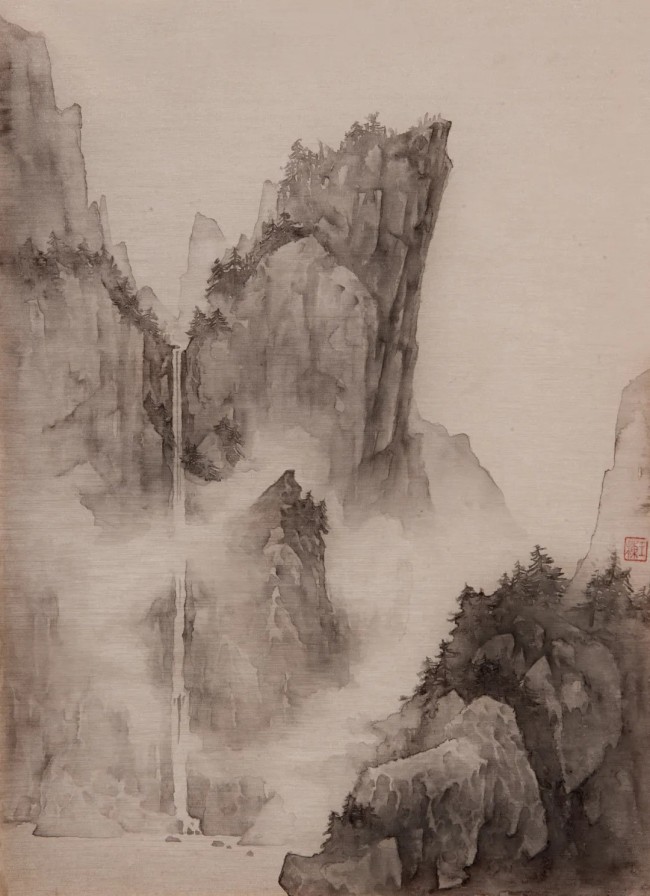 《亘古--远瀑》50cmx40cm 绢本水墨 2022年
