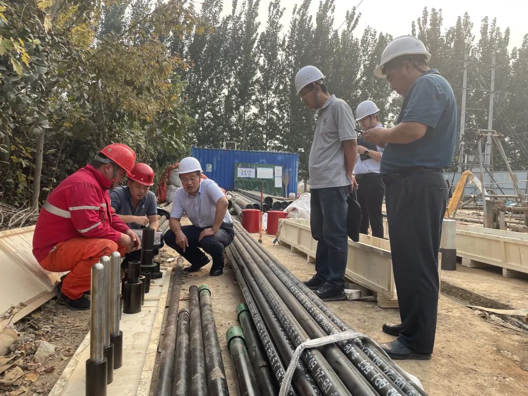本次支部圆桌会,由水环中心党支部发起,中心主任、中心主任工程师、各事业部负责人、施工项目经理和专业技术骨干结合各种工作实际,在现场对进场的基岩标、分层标标杆材料进行检验,对下一步成井、固井、护壁管、滤水管安装进行讨论,重点对标底、标杆、内外扶正器、主副标头及井口保护装置整套设备的组合及入井安装进行了深入交流研究。