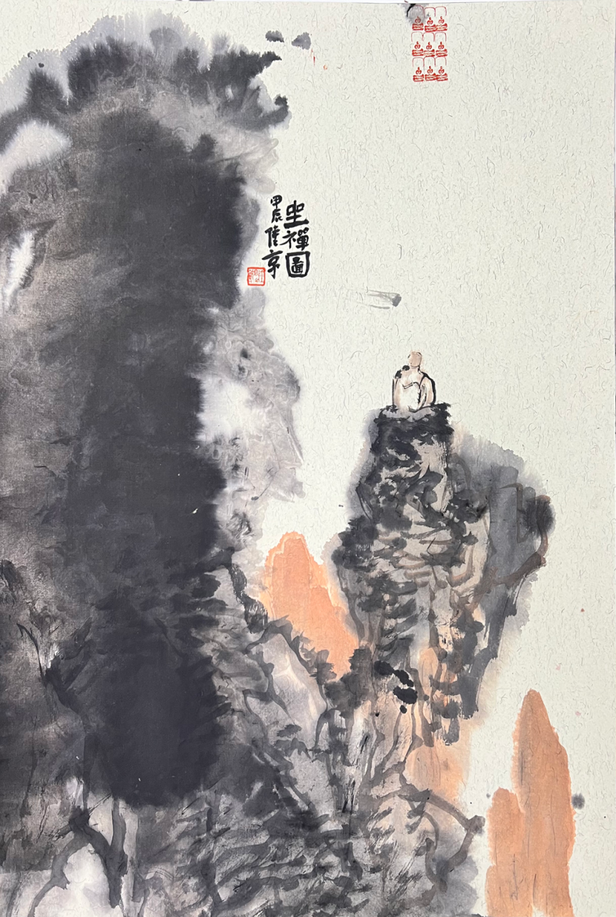《坐禅图》73.5cmX50cm 纸本设色 2024 作者宋陆京