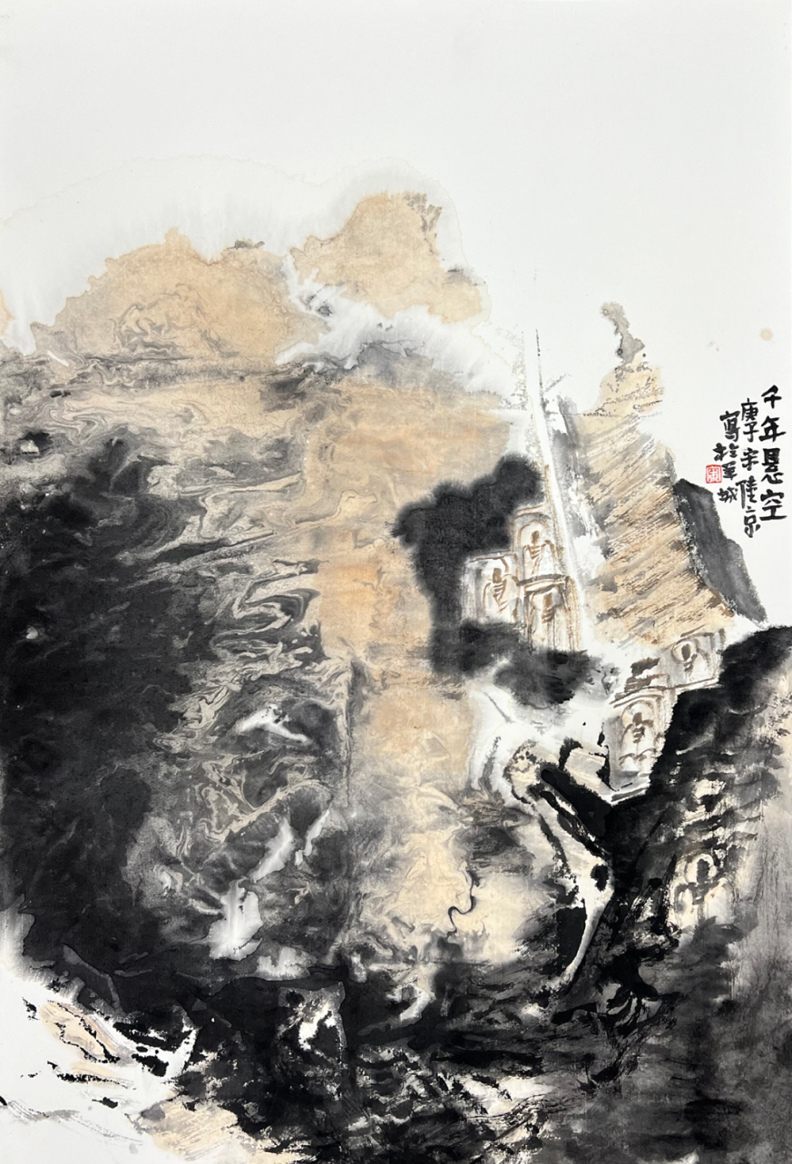 《千年悬空》73.5cmX50cm 纸本设色 2020 作者宋陆京