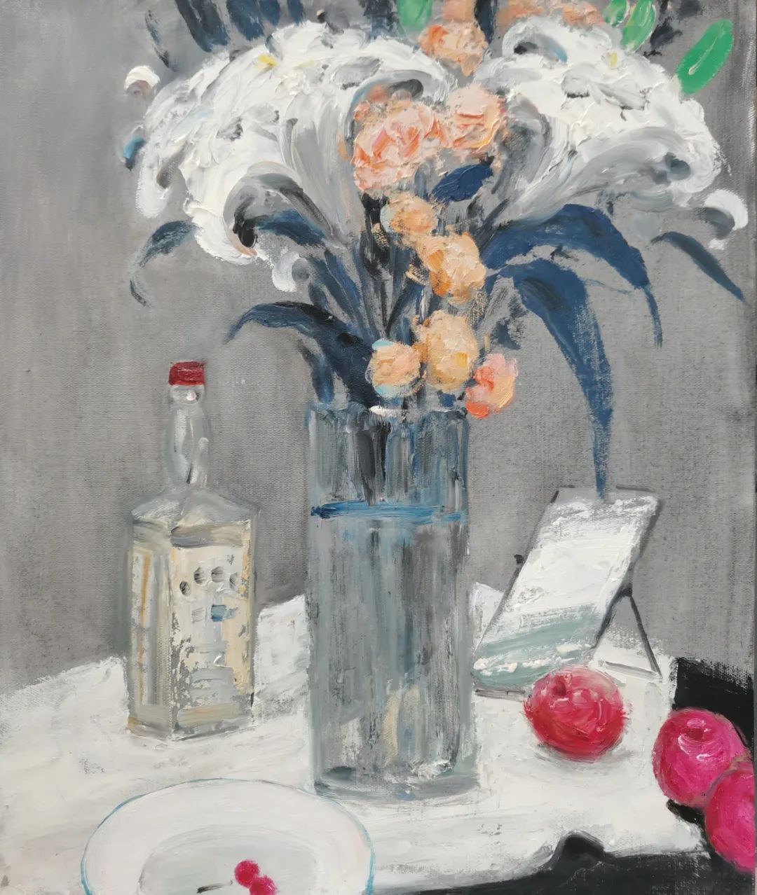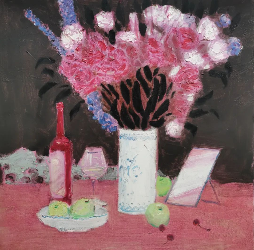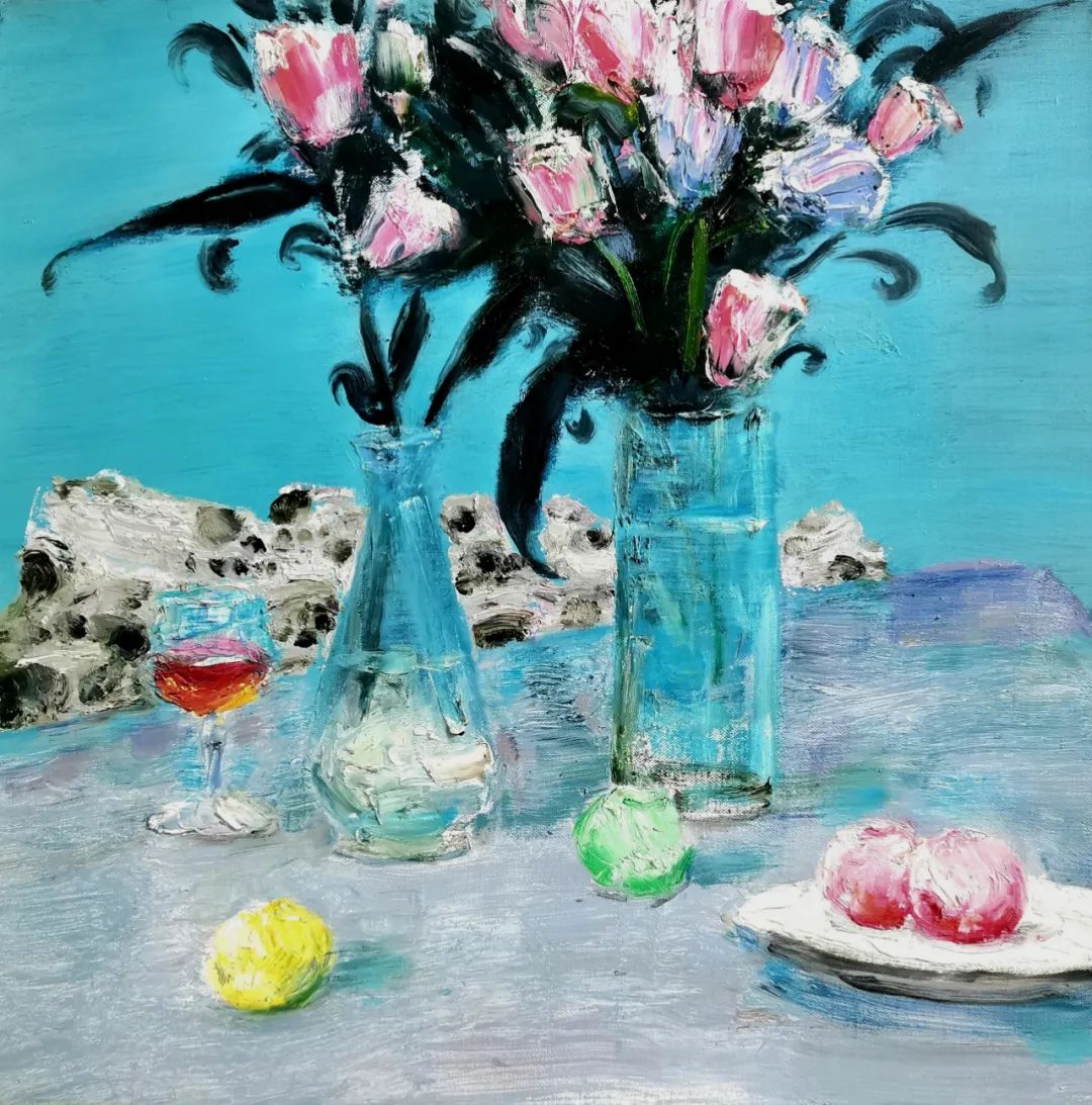 在艺术的浩瀚宇宙中,每一幅作品都是一个独特的世界,静静地诉说着创作者的心声与情感。岳海涛教授的静物作品,便是这样一方方细腻入微、意蕴深远的艺术天地。他以花为媒介,通过精湛的技艺与深邃的思考,引领我们走进一个又一个“一花一世界”的奇妙旅程。