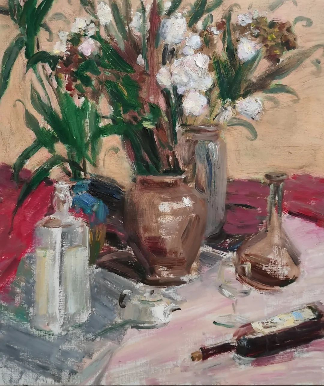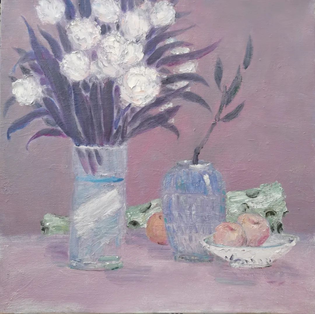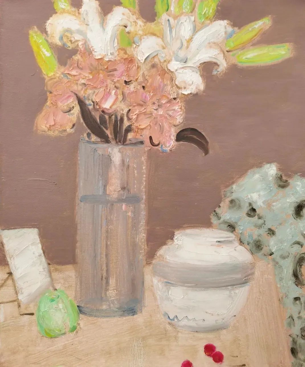 在艺术的浩瀚宇宙中,每一幅作品都是一个独特的世界,静静地诉说着创作者的心声与情感。岳海涛教授的静物作品,便是这样一方方细腻入微、意蕴深远的艺术天地。他以花为媒介,通过精湛的技艺与深邃的思考,引领我们走进一个又一个“一花一世界”的奇妙旅程。