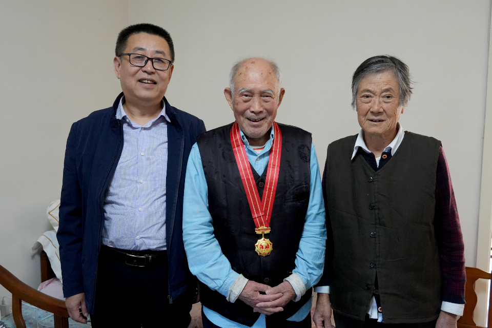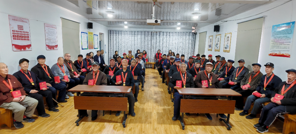 在庄严而温馨的氛围中,郝江波为与会的老同颁发了纪念章,并向他们致以诚挚的祝贺与崇高的敬意。
