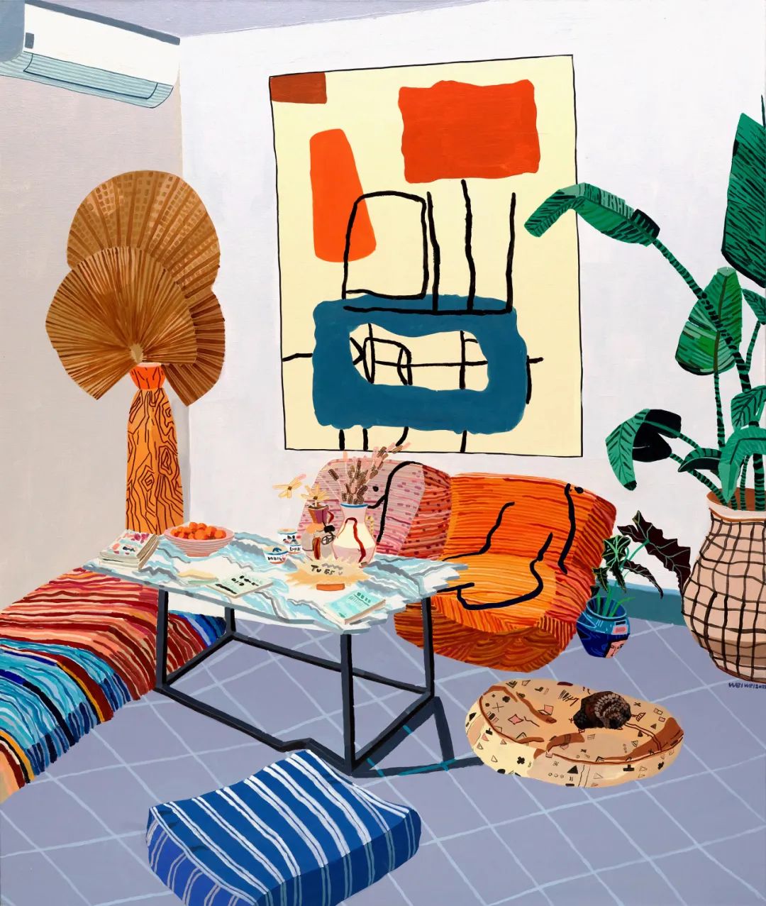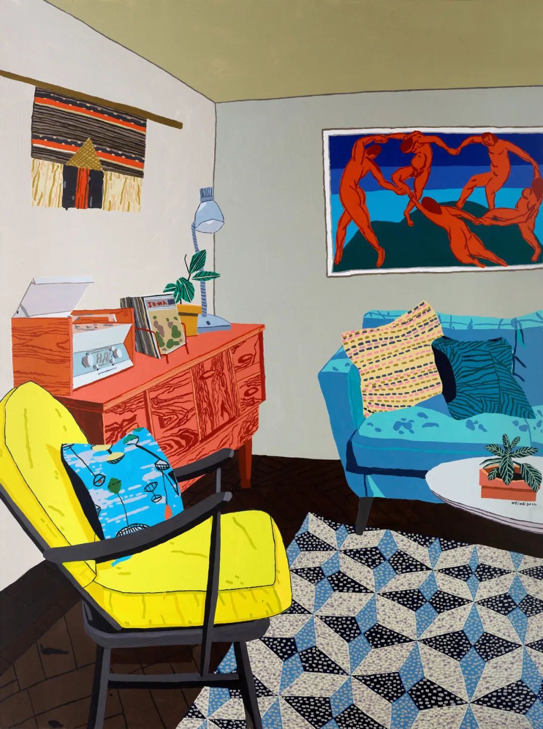 画如其人,我眼中的魏巍就像一间大平层样板房,南北通透,格局方正,采光充足,干净整洁。作为江苏省优秀青年画家,在工作中取得一定成就的同时,在家庭角色中亦磨炼多年,拥有让人憧憬的家庭生活和清晰稳健的创作脉络。可以说是当代美院科班出身最杰出的典范,即善于从折衷主义和理想主义中汲取灵感,创作出色彩鲜艳,对比强烈、线条简练的作品。