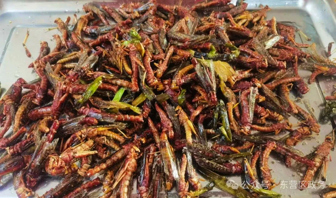 近日,胜园街道卢家村飞蝗养殖示范基地的蚂蚱上市了。炸蚂蚱、烤蚂蚱、蚂蚱酱……蚂蚱的吃法可太多了!通过食客们的巧思制作,小小蚂蚱“摇身一变”成为了东营区餐桌上一道新晋美食。