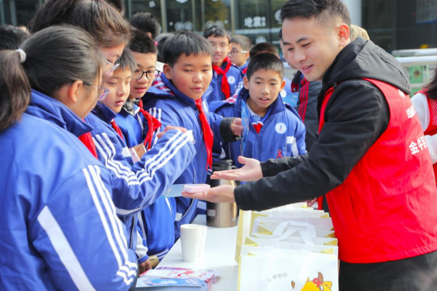 活动第一项是启动仪式,主持人向到场嘉宾及青少年介绍了世界艾滋病日设立的由来以及红丝带的含义,大家用丝带传情,将象征着对艾滋病病人和感染者的关心与支持的红丝带胸章佩戴在左胸上。随后,青少年与未来防灾体验馆的负责人王冕致辞,鼓励青少年群体增强自我防护能力,学习预防艾滋病的知识与技能。最后,青少年代表用稚嫩坚定的声音宣读防艾倡议书,呼吁同伴们携手抗艾,展现防艾的青春力量。