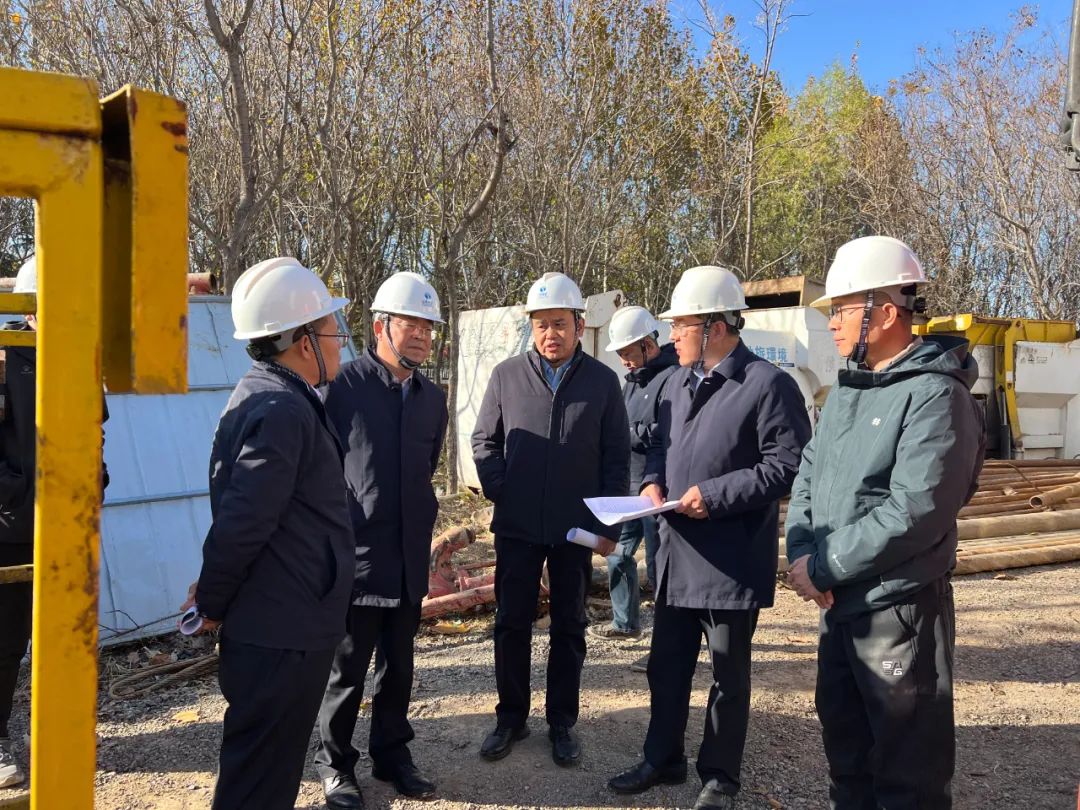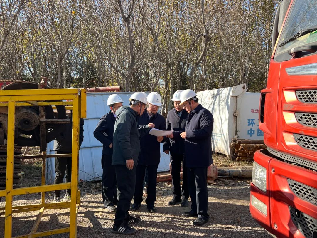 11月28日上午,省地矿局党委常委、副局长刘祥元,局总工程师彭玉明到我院承担的聊城市东昌府区侯营镇地面沉降监测网建设项目施工现场进行检查和督导。