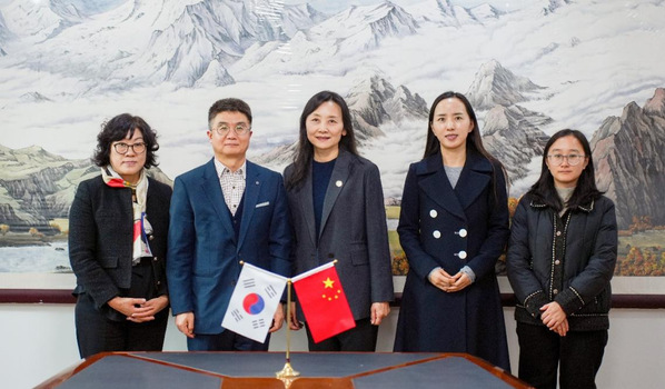 12月2日,韩国明知大学国际交流处副处长李汀国一行来山东外事职业大学访问交流,学校国际交流与合作处处长张婕等接待来宾。