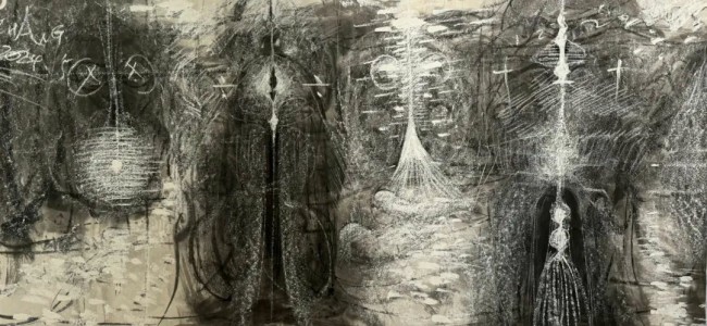 110cm×76cm,纸本、布、油彩、油画棒、墨,2023年