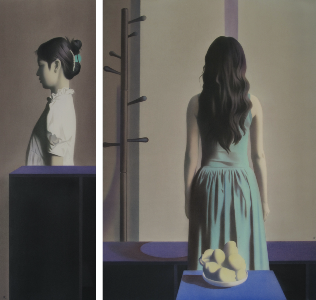 光是西方古典绘画不争的缔造者,它用威权统领着画中的一切,使观者产生强烈的注视之感。我则取光之平淡温和,它从我的画面浅浅拂过,几乎是不动声色的审视着画面中因它而存在的一切,它飘忽着,游离着夹杂着细微的步子然后转身隐去。它使一切显形,它细致的注视着它能发现的一切,形、色,质地都在它的注视下发生着微妙的改变。它平和而安静的协调着画中的一切,微冷而平静的光使画面没有激情的搅动与纠葛,只是让一切自然地存在,然后自然地发生。你我目光所及之处皆是它不经意间的巧妙之举。而心之光则从内而出,它找寻着画面的安适之处,与外境之光形成美妙的对应,但也夹杂着一丝外境的微尘。形与色都似它的影子,它变化着轻盈的身形使他们紧张的跟随。