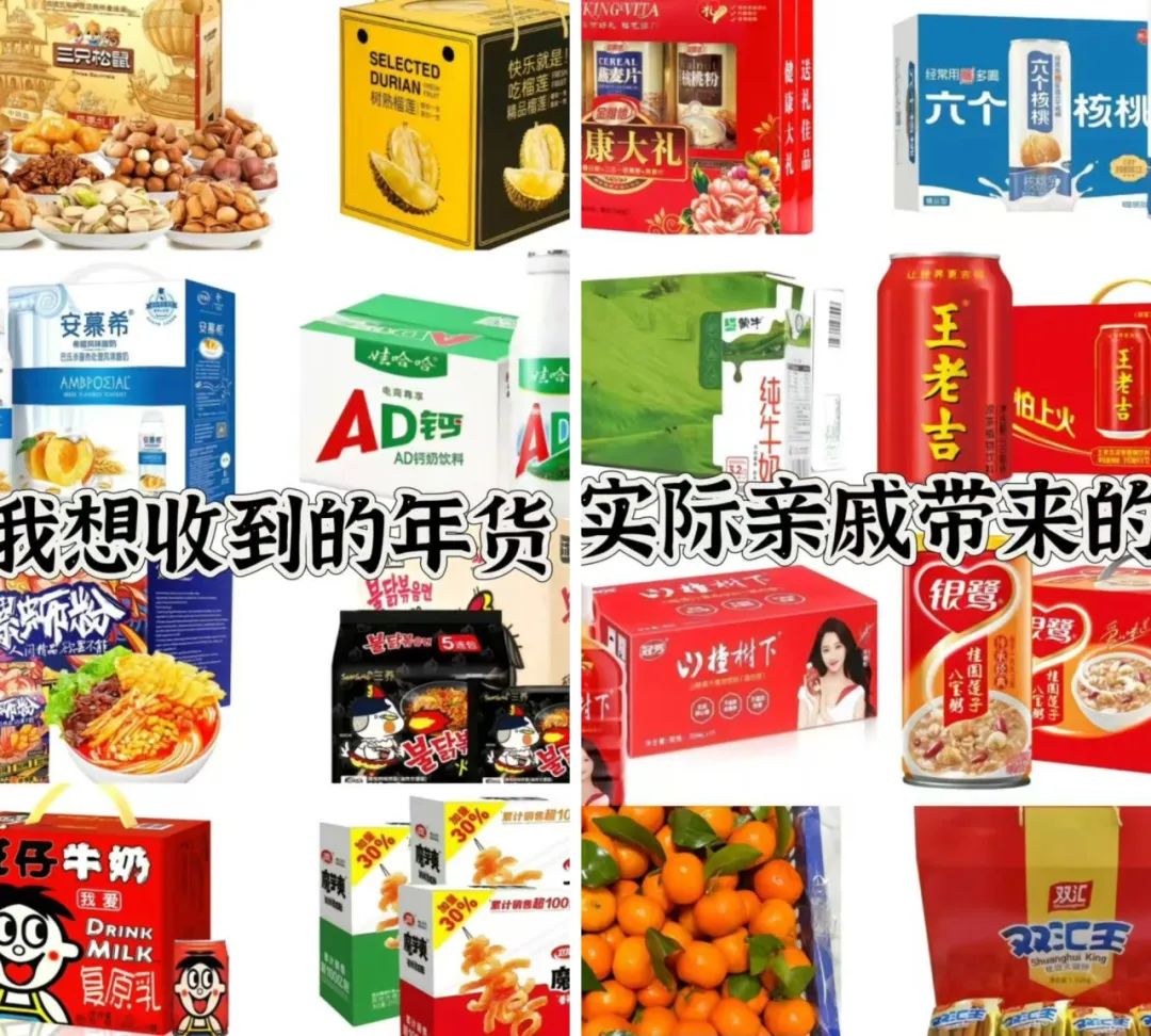 只是,当思绪最终落回现实,他们才想起来,其实自己每年过年收到的都是:纯牛奶、营养快线、八宝粥、砂糖橘......与前者不能说是一模一样,可以说是毫不相干。