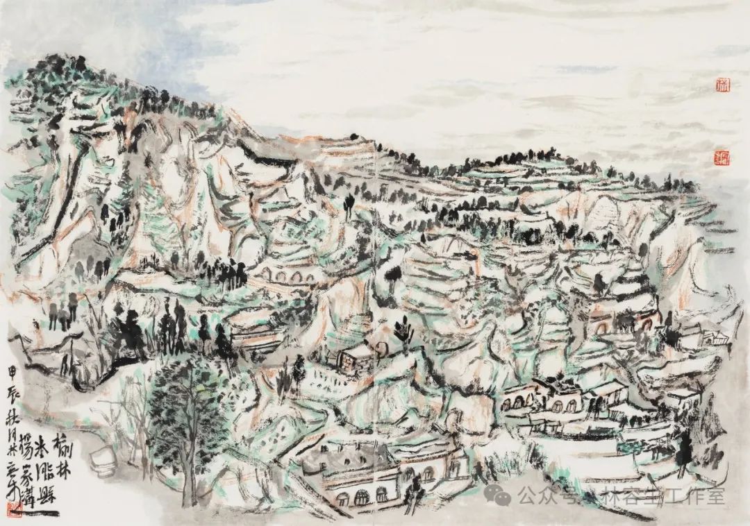 榆林米脂县杨家沟 纸本水墨设色 45x64cm 2024