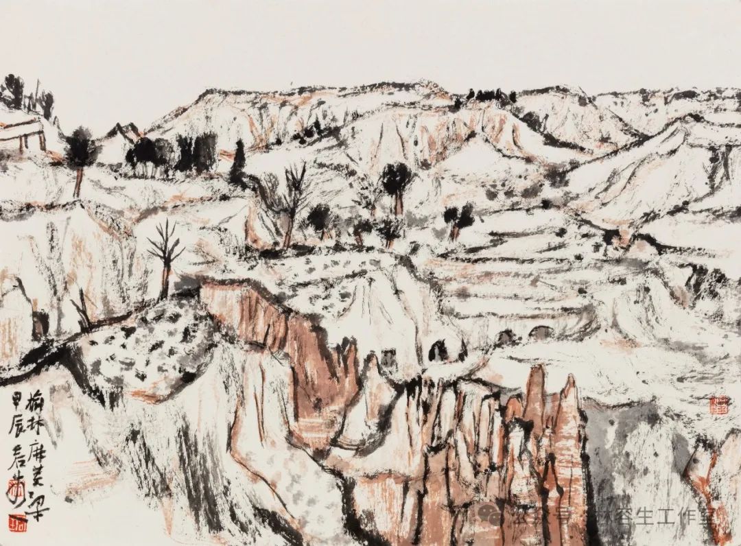榆林麻黄梁段家湾 纸本水墨设色 45x64cm 2024