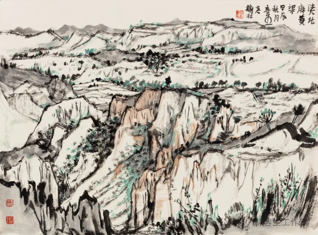 榆林麻黄梁黄土地质公园 纸本水墨设色 39x53cm 2024