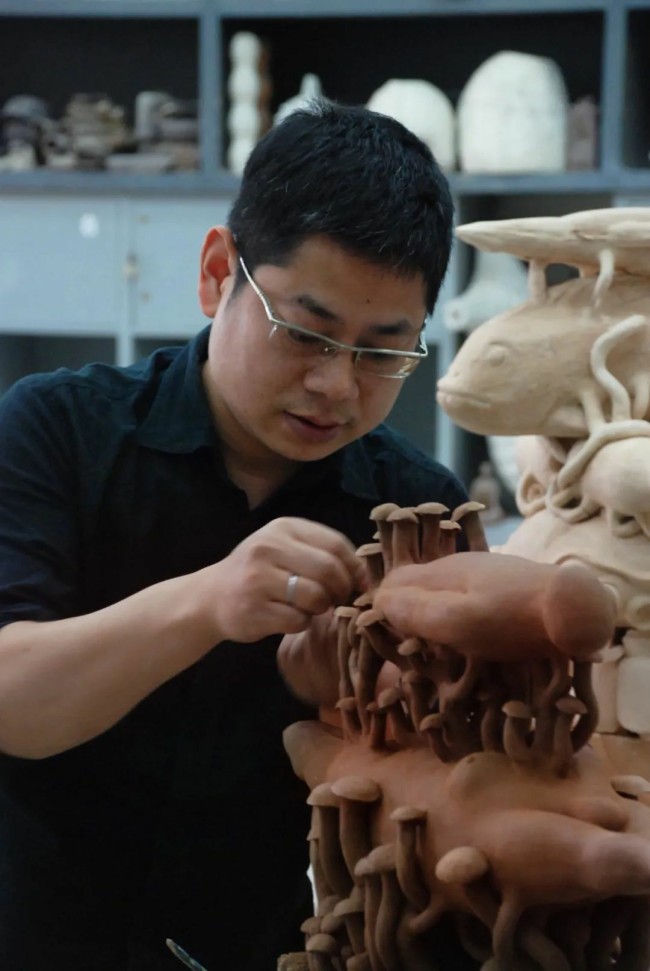 几年后高中毕业,因对雕塑的喜爱考上了四川美术学院雕塑系,长达五年的系统专业教育使我对雕塑的理解有了更为全面的认识。毕业后,听从龙太成老师的建议到江西景德镇陶瓷学院雕塑系任教,开设了传统木雕课程和传统泥塑课程。这期间我着迷于新奇的陶瓷材料,高岭土矿石粉碎淘洗成瓷泥,经过窑火呈现出千姿百态的瓷器,这是一种物质的转化;加之陶瓷成型方式的不一样也激发了我极大的兴趣,由此创作《家园》、“同脉生息”等系列作品。这期间用物质循环的观念来比拟人生进行创作,探索这古老材料的各种可能。
