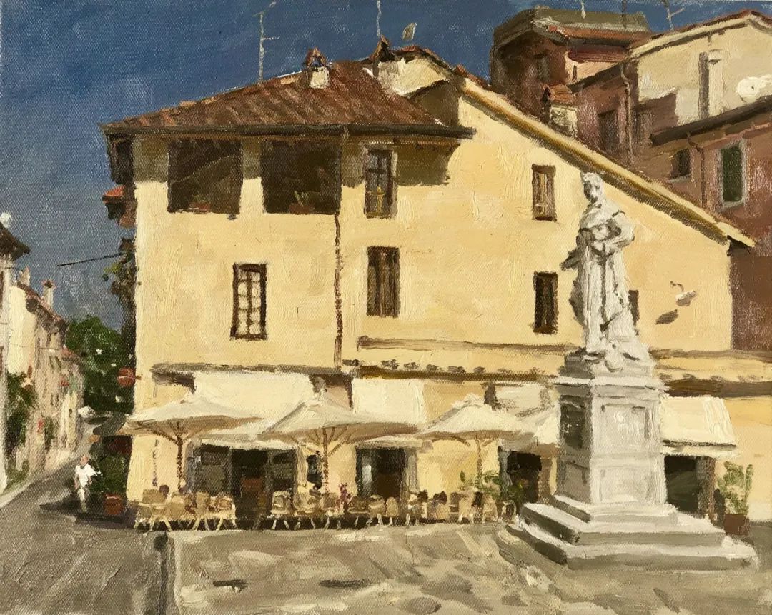 《皮耶特拉桑塔的咖啡屋》 布面油画 40X50cm 2019年