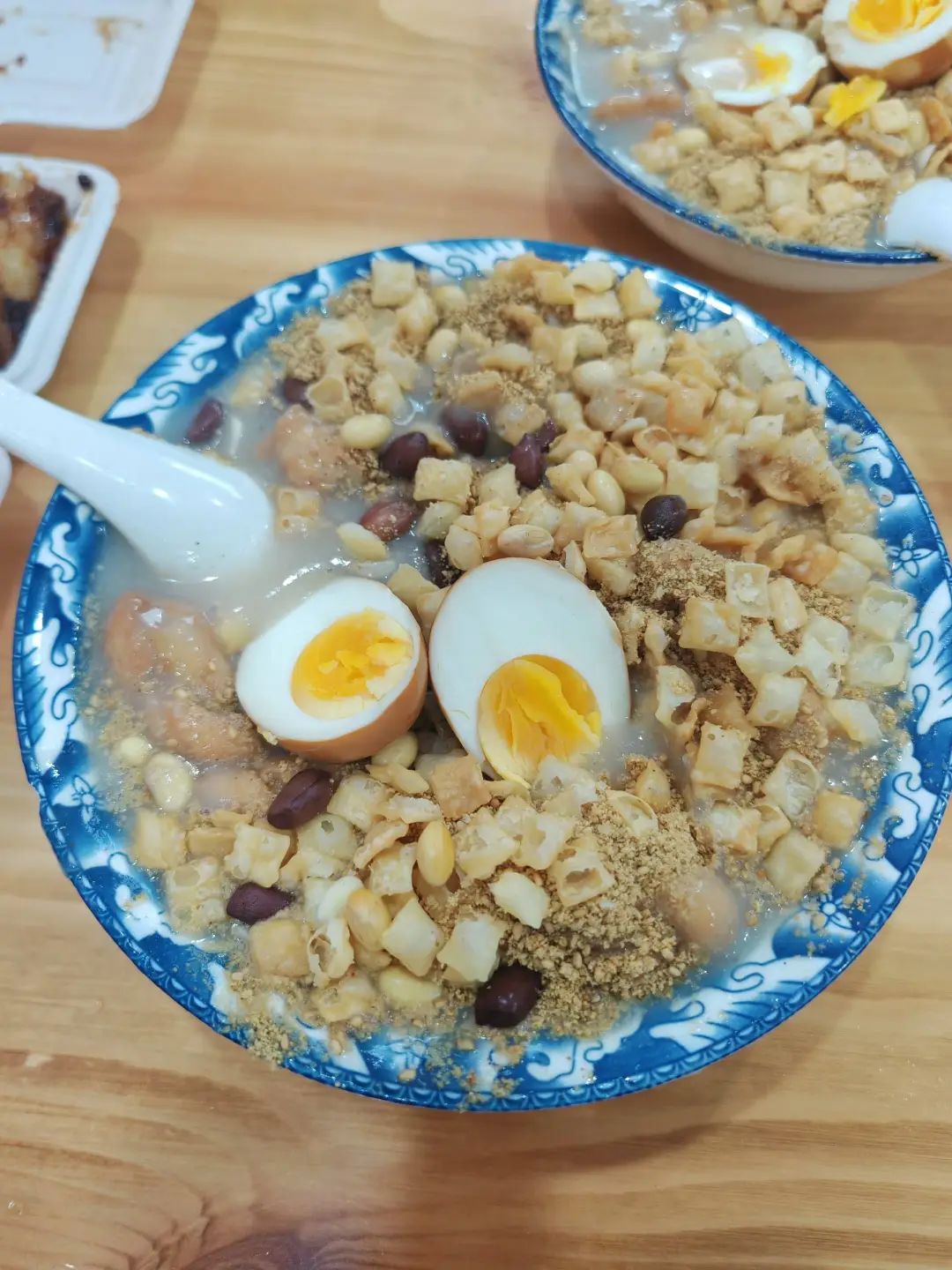 这种油茶只有苏鲁豫皖交界一带才有,和很多地方的油茶都不一样,包括西安,回坊里有时能排半里地队的油茶,却不是一个品种,话说回来,西安的油茶也不错,但确实油了点。