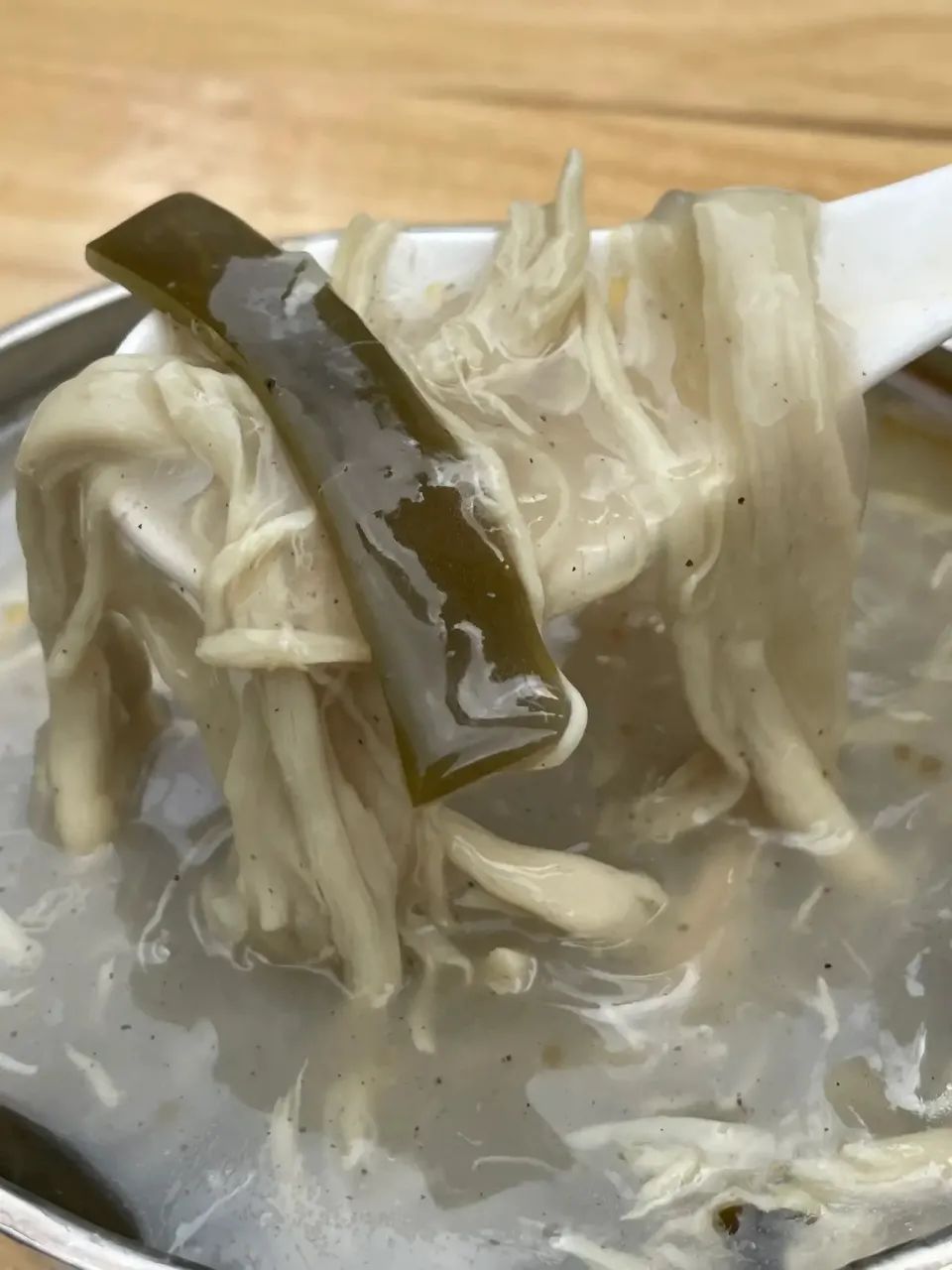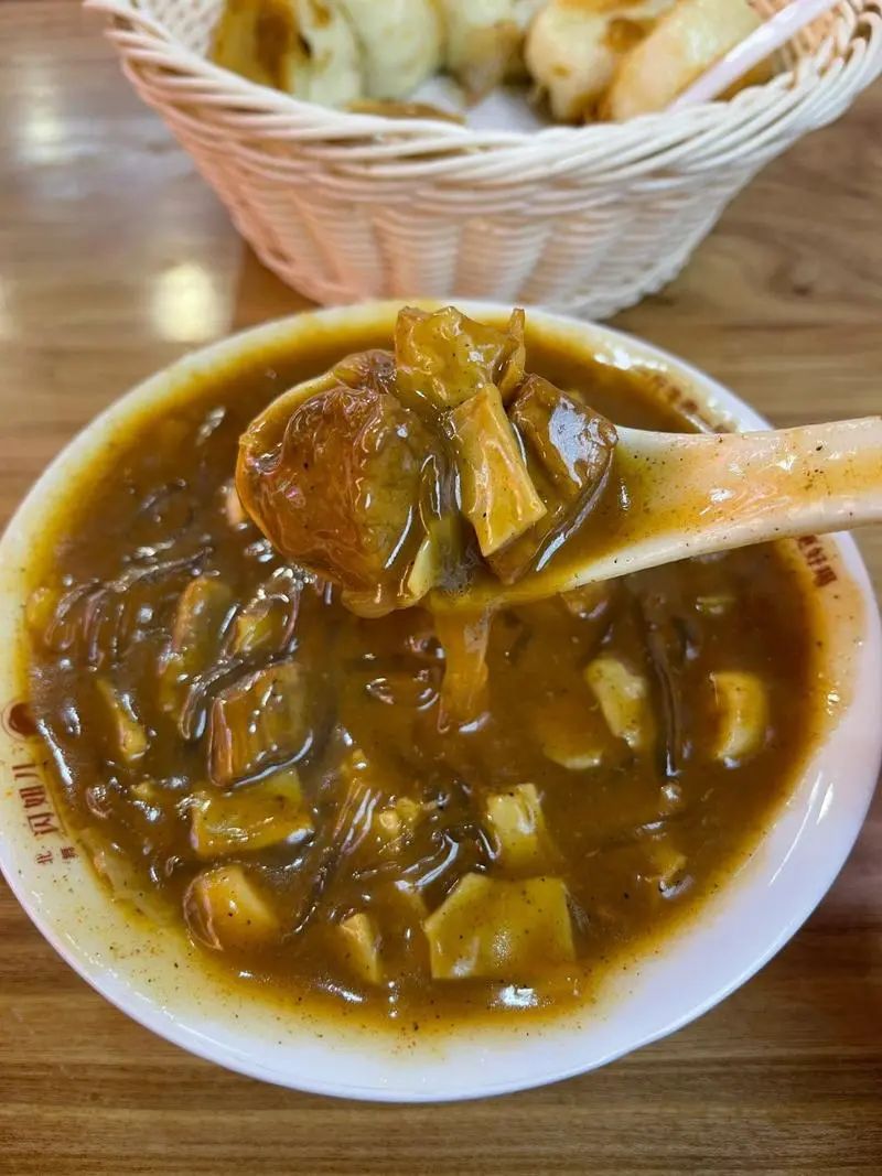 逍遥镇胡辣汤的名气大,也和他们走出去的时间更长有关。上世纪八九十年代,老家县城田庄路口,就开了家西华县逍遥镇胡辣汤,和县城通常的胡辣汤不同,那里的胡辣汤口味要重很多,不但更胡辣,而且多了很多类似豆皮的“人造肉”片,口感也更丰富。只不过就餐环境很差,虽然在屋里,但屋黑地滑,胡辣汤不打折,不小心能摔骨折。