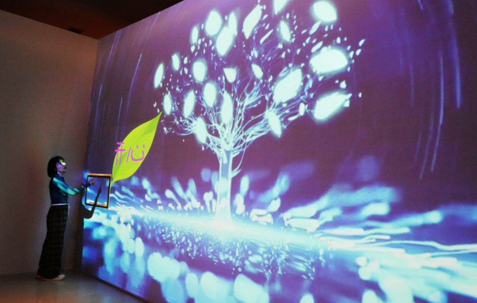 在许愿树下,观众能够通过互动屏亲手创作树叶,将美好的祝愿融入其中,共同汇聚成一股强大的正能量。