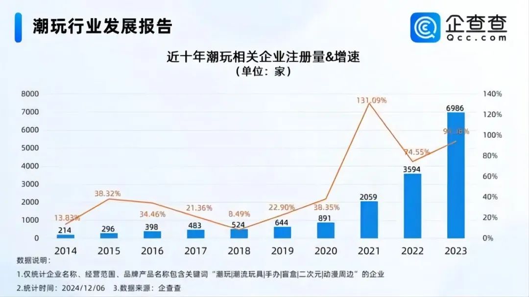 图:近十年潮玩相关企业注册量,图源企查查