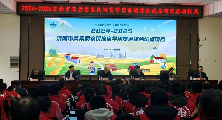 12月24日,由山东省农业广播电视学校指导、济南市农业农村局主办、山东省农业广播电视学校济南市分校承办的济南市高素质农民培育学用贯通综合试点项目在济南市农民教育培训基地正式启动。中央农广校发展研究专班负责人陈吉,省农业农村厅党组成员刘振杰,济南市农业农村局党组书记、局长孟帅出席启动仪式并讲话。