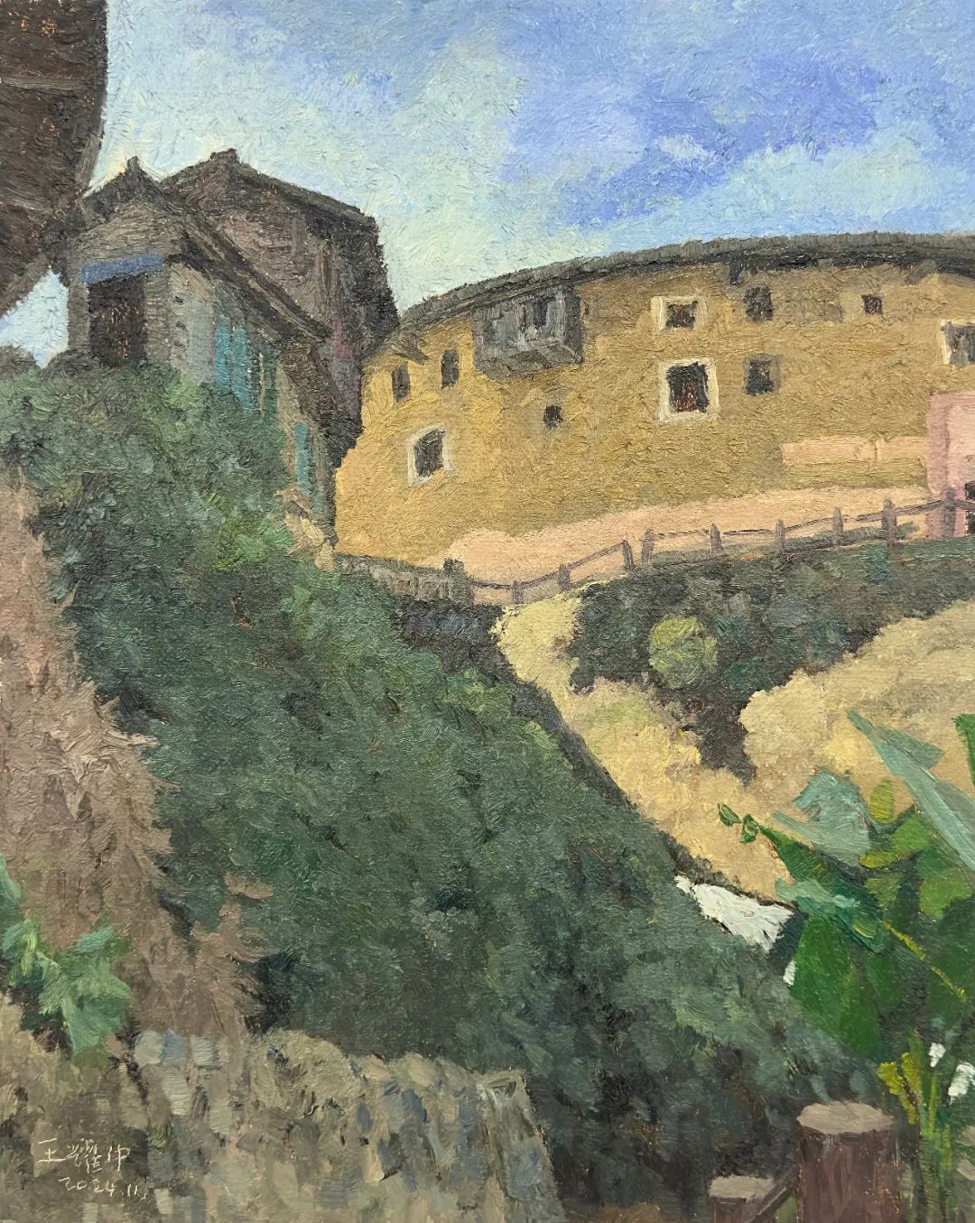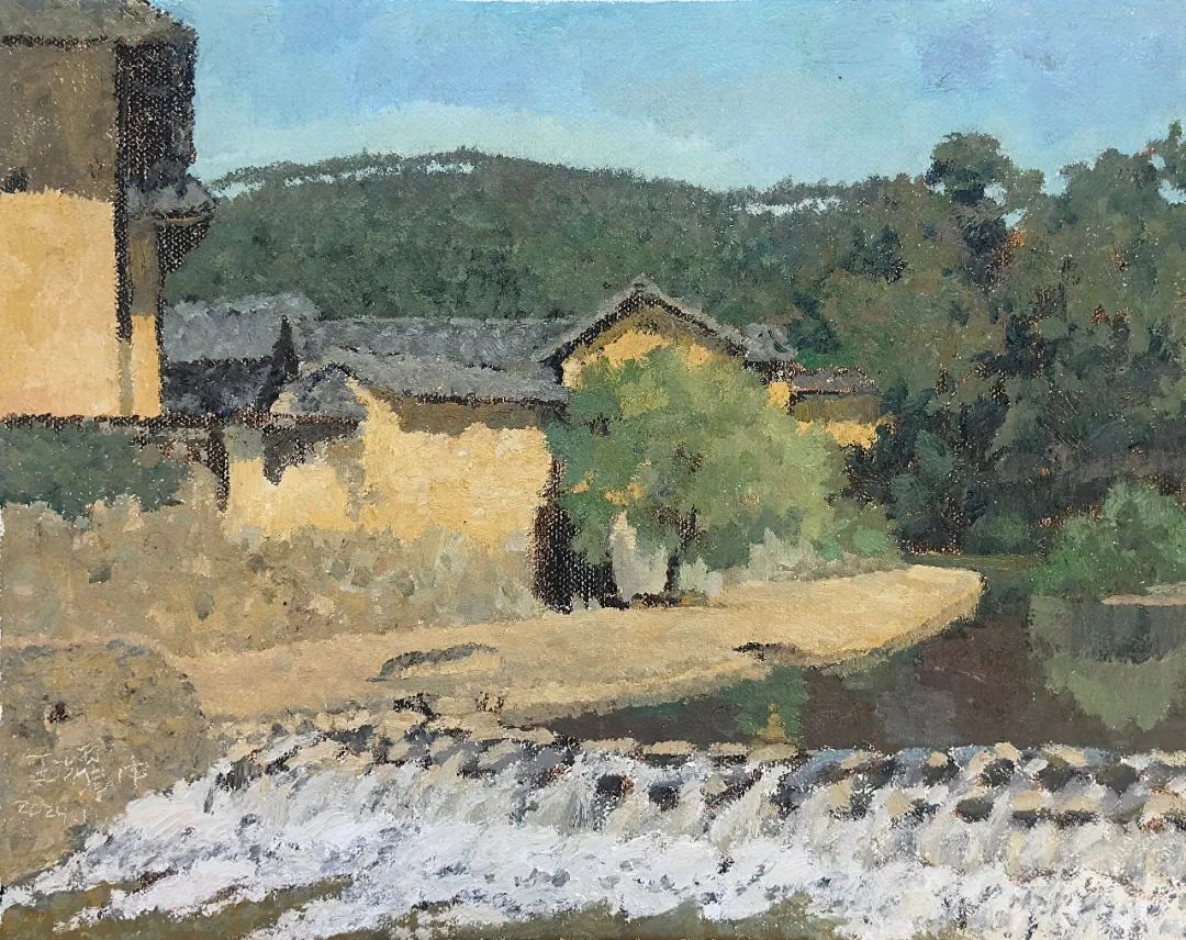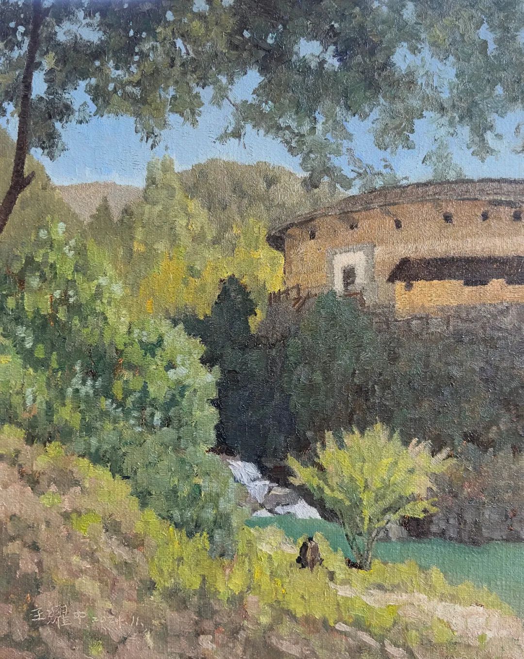 客家土楼之洪坑小溪 40x50cm 油画 2024年11月