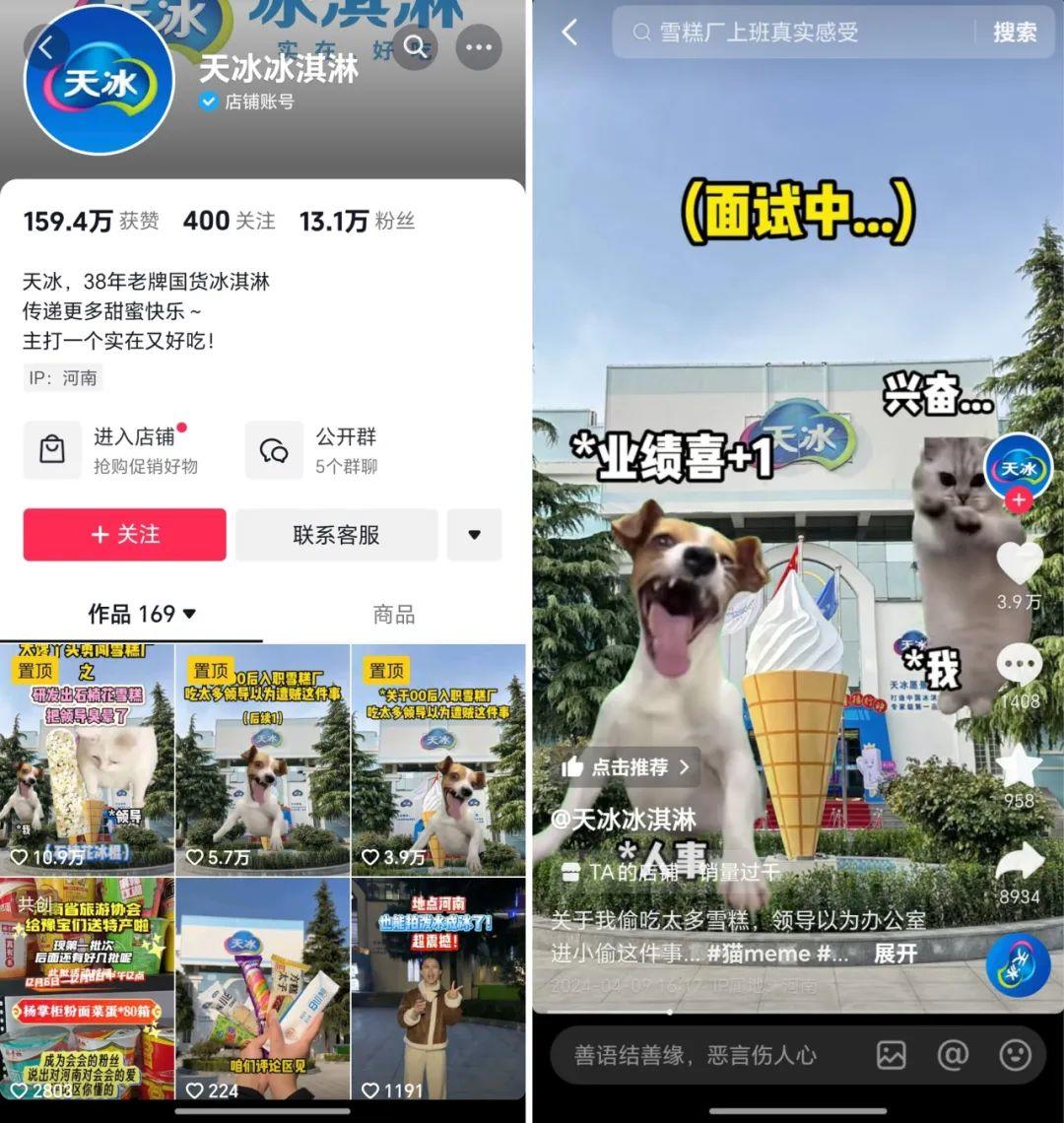 “天冰冰淇淋”抖音官方账号今年4月发布的视频直白地指出了这一点:起初,在选题会议上,领导拒绝加入做猫meme视频的潮流,坚持按照传统思维进行营销,结果发布的视频点赞量始终不超过300,领导不情愿妥协后,账号发布的第一条猫meme视频点赞量达到了3.9万。