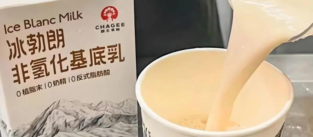 “冰勃朗”就是品牌对于该课题给出的新一代成果。2023年7月霸王茶姬宣布将在旗下超2000家门店投入使用全新基底产品“冰勃朗非氢化基底乳”,冰勃朗采用了“0反式脂肪酸、0植脂末、0氢化植物油”全新工艺,一经推广,也引发其他一众茶饮品牌跟进,开始广泛使用这一产品。