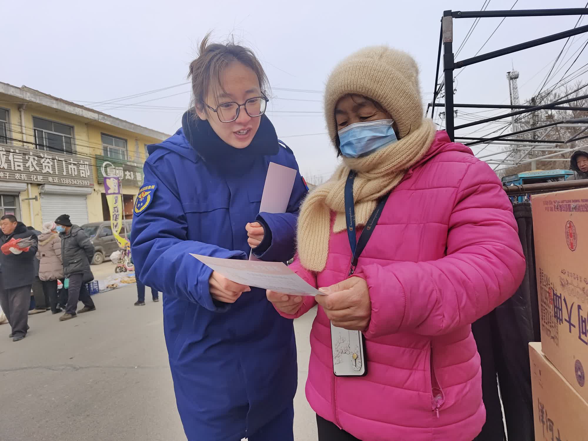“天气很冷,家里取暖一定要注意防火,房前屋后不要堆草垛,不要乱丢烟头......”在夏津县,消防宣传员联合志愿者组成宣传小分队深入田庄乡、香赵庄镇集市开展消防安全知识宣传,为群众详细讲解日常生活中的消防安全注意事项。叮嘱过往群众,冬季干燥是火灾易发、多发期,大风天气较多,防火安全工作尤为重要,一旦失火极易发生“火烧连营”事故,会造成重大财产或健康损失,要进一步绷紧消防安全弦。
