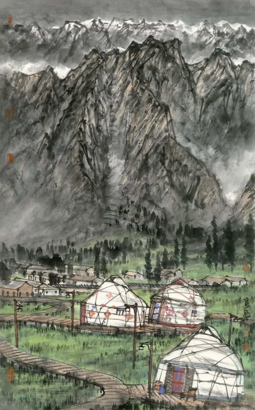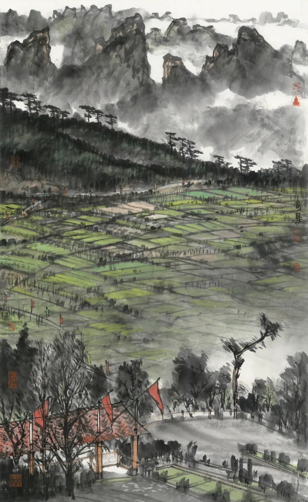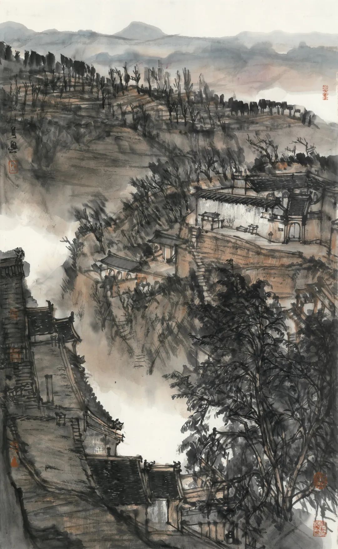 李家山一隅-97cmX60cm-纸本设色-2024年