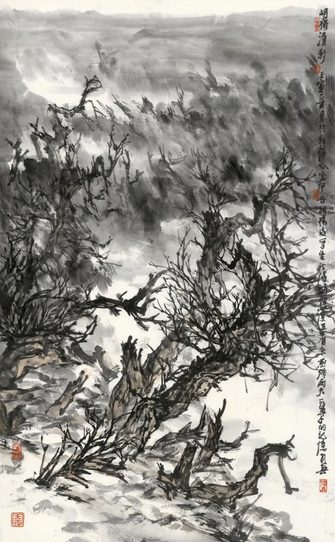胡杨清影-97x60cm-纸本水墨-2022年