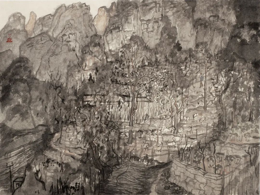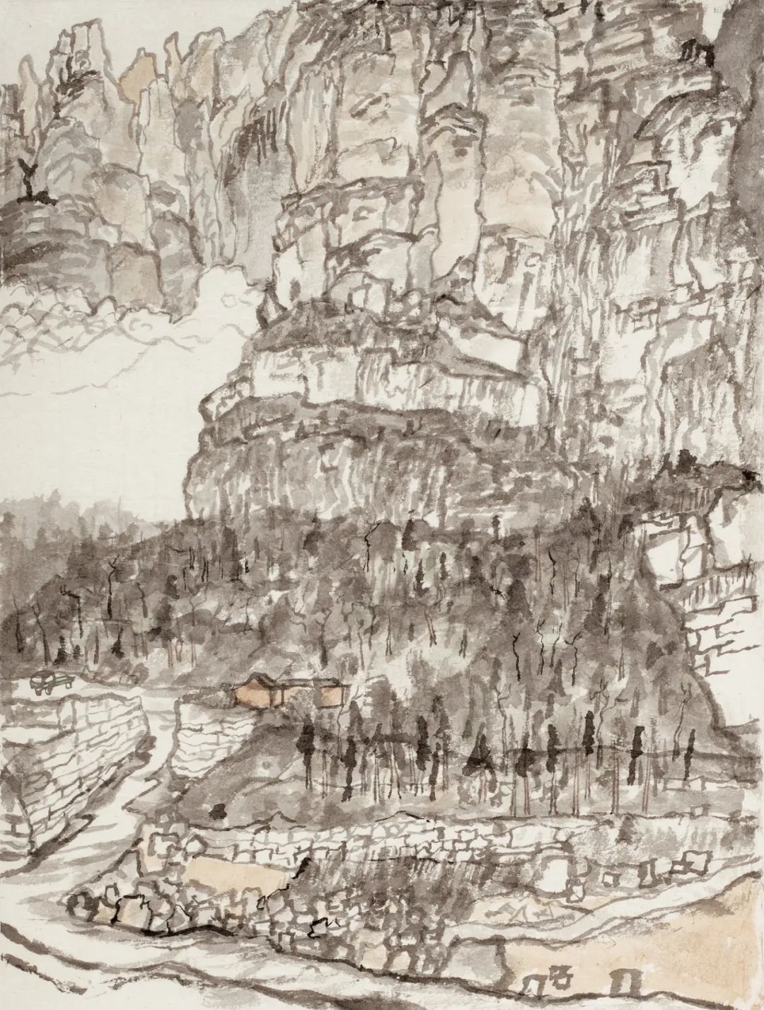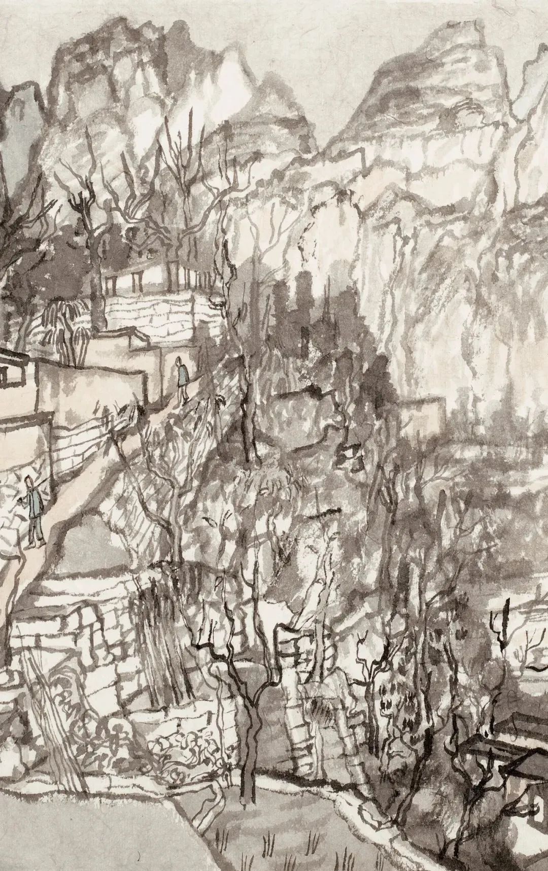 四月的水峪还没完全从春天复苏,扭动着枝干的秃树和灰青色的石头房子仿佛透出笔墨的枯润,错落有致的石子墙也跳动着自身的节奏和韵律,古老的村落、自由的猫和狗……置身村中古道,有些许时空的错愕和对历史的追思。