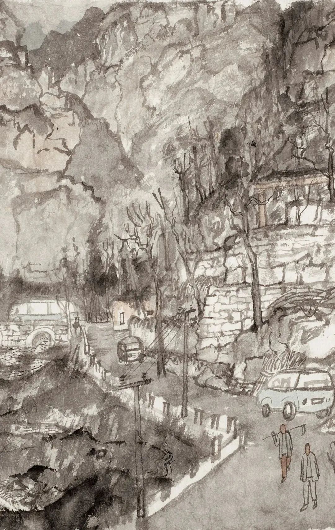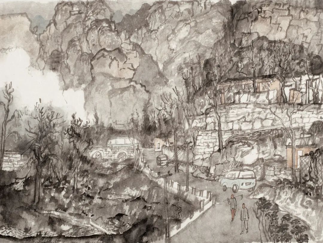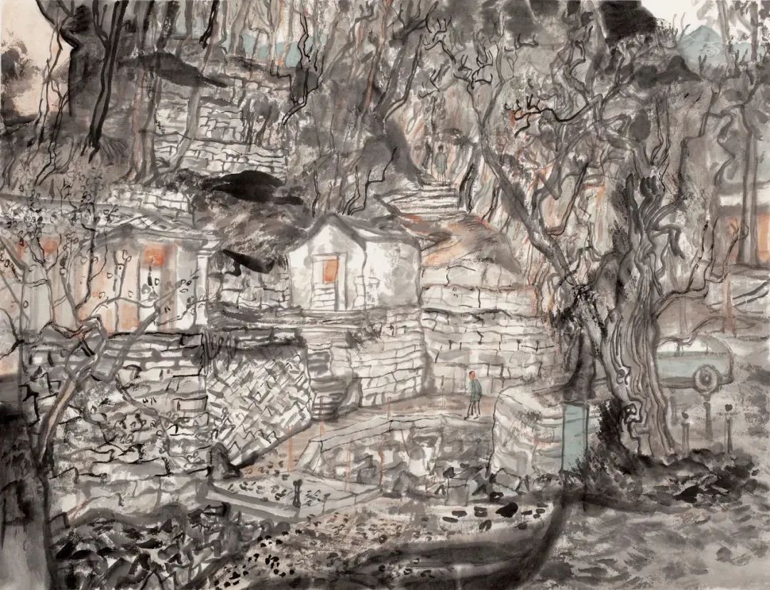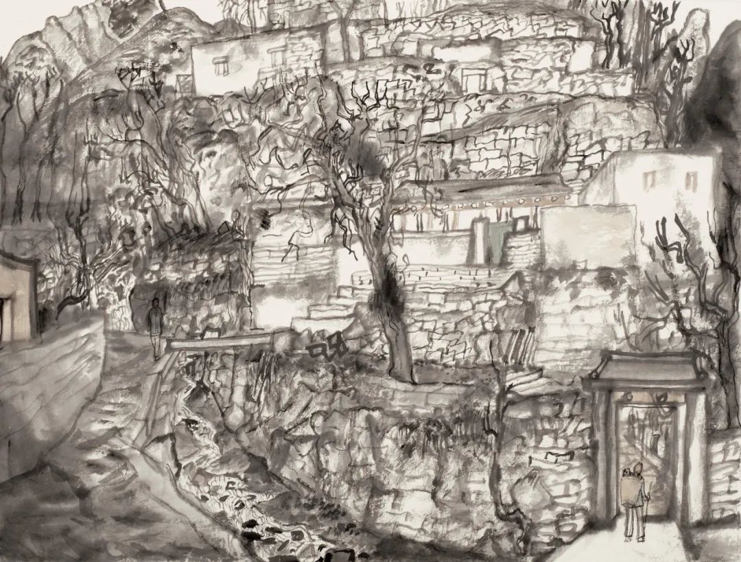 千年古槐包容着一切,旁侧东司都显得可爱,非典型和不完美的客观,闪烁着个性的灵光和情思的潜能,方向的语言符号总在这样的角落寻找,似乎现场会告诉他画画的答案,像孩童一样去好奇,夜幕的山里除了黑暗,便还有星星可以观察。