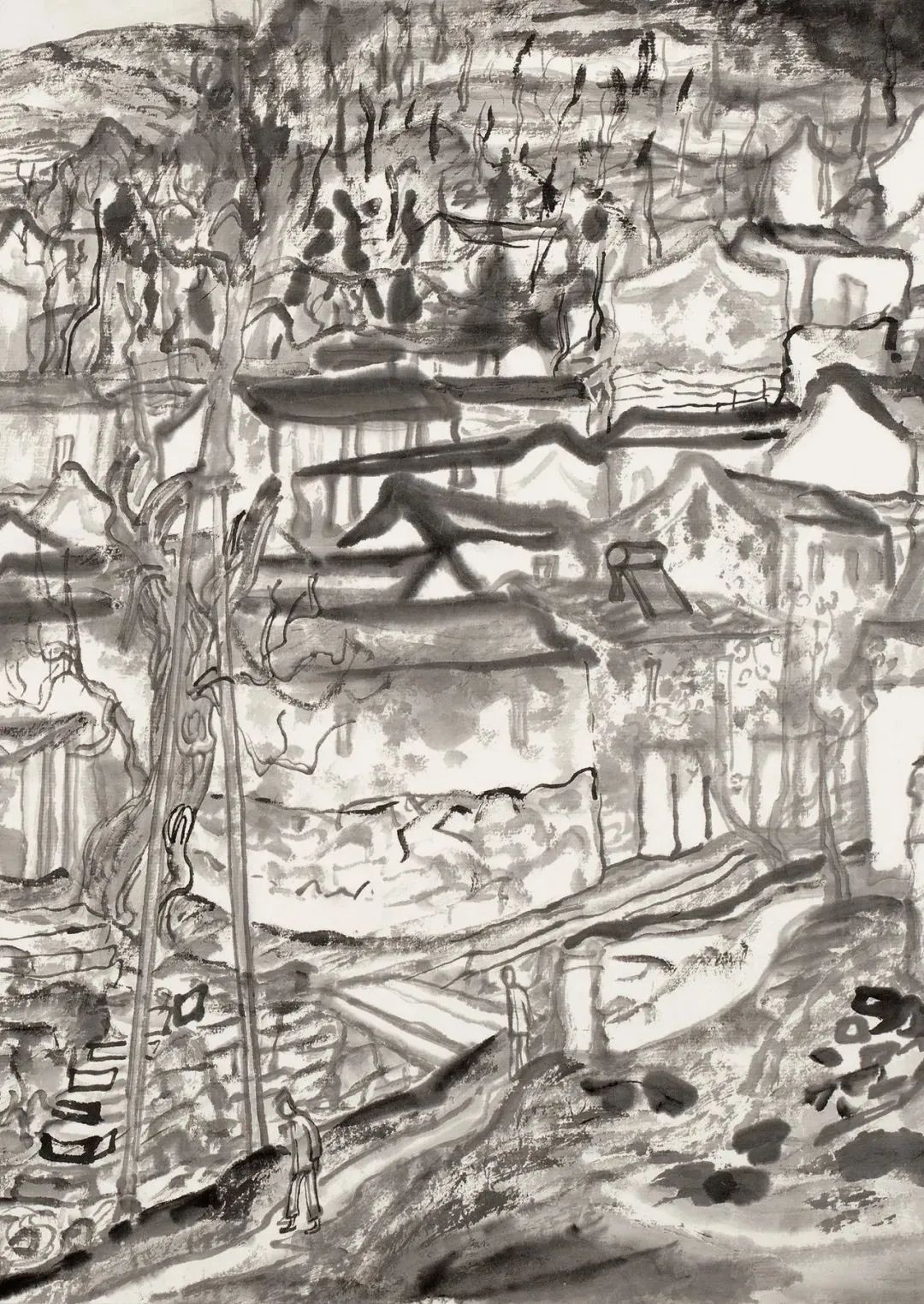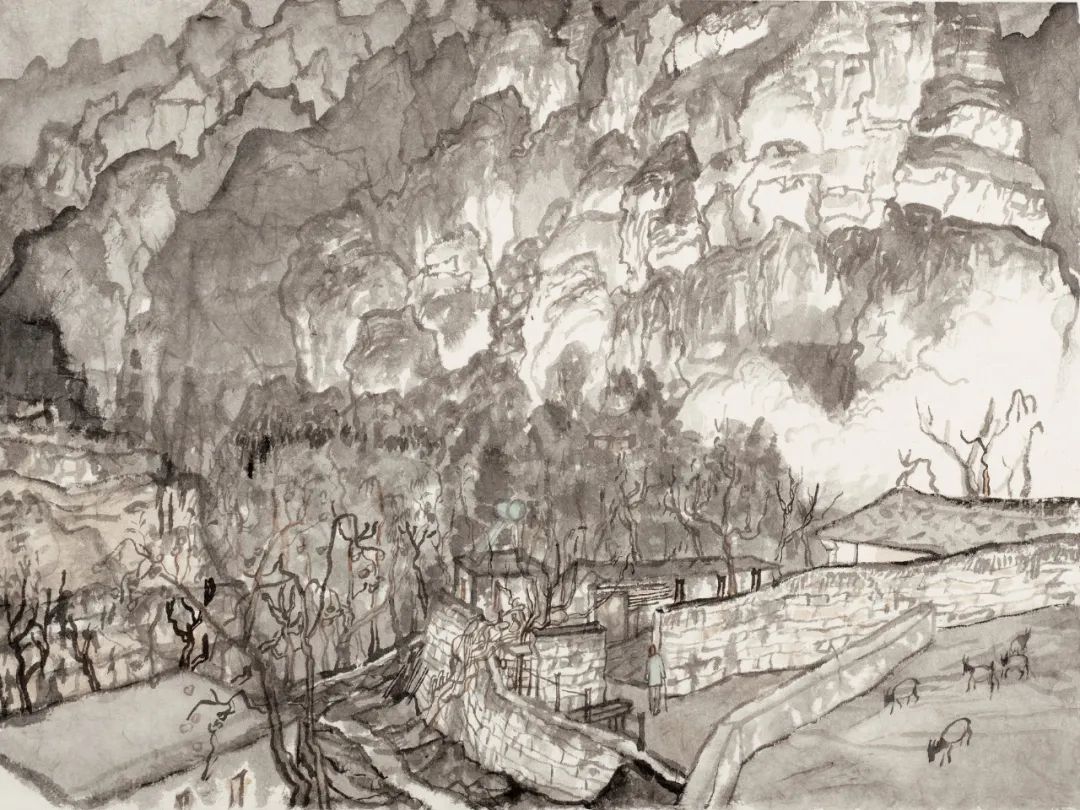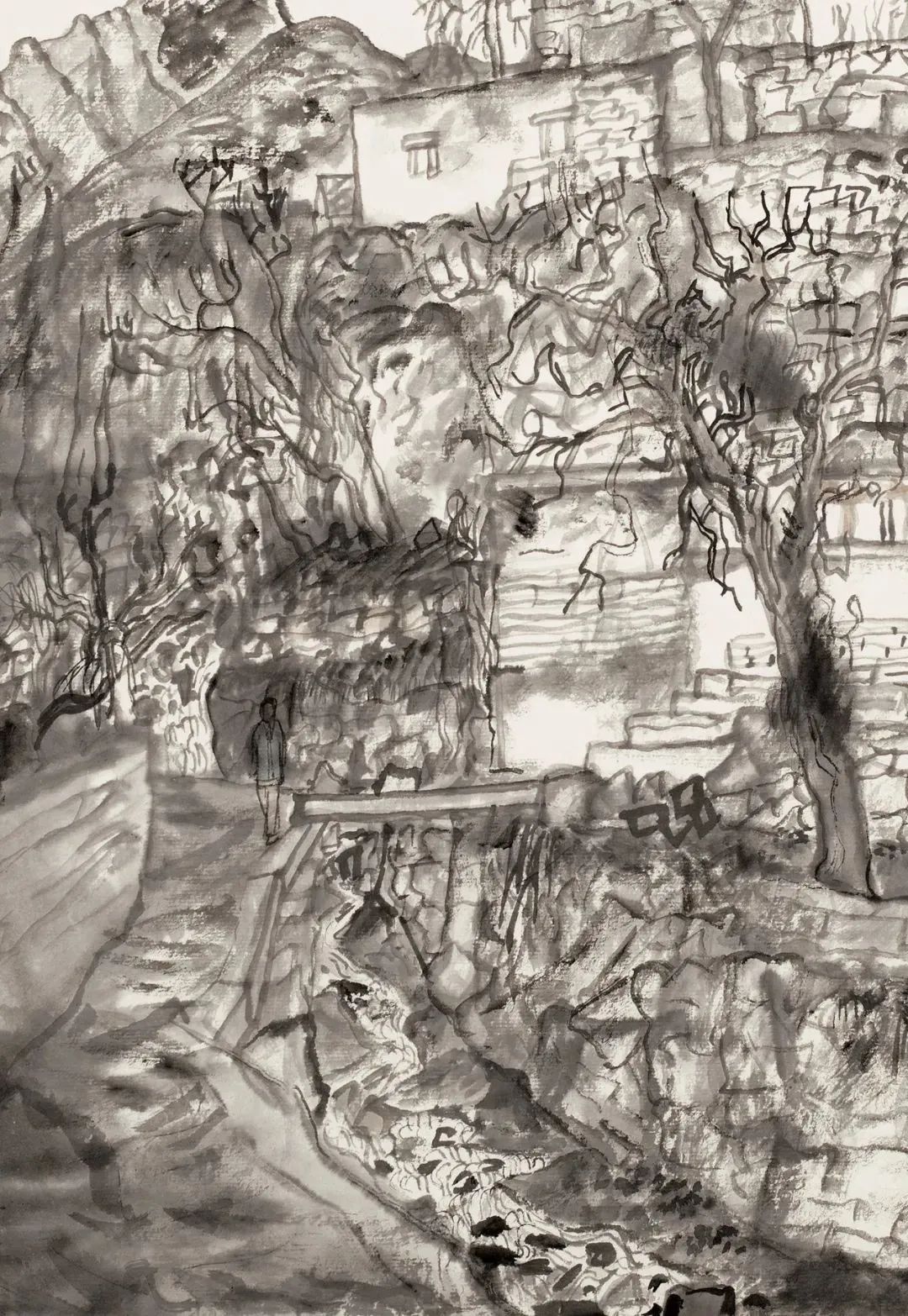 千年古槐包容着一切,旁侧东司都显得可爱,非典型和不完美的客观,闪烁着个性的灵光和情思的潜能,方向的语言符号总在这样的角落寻找,似乎现场会告诉他画画的答案,像孩童一样去好奇,夜幕的山里除了黑暗,便还有星星可以观察。