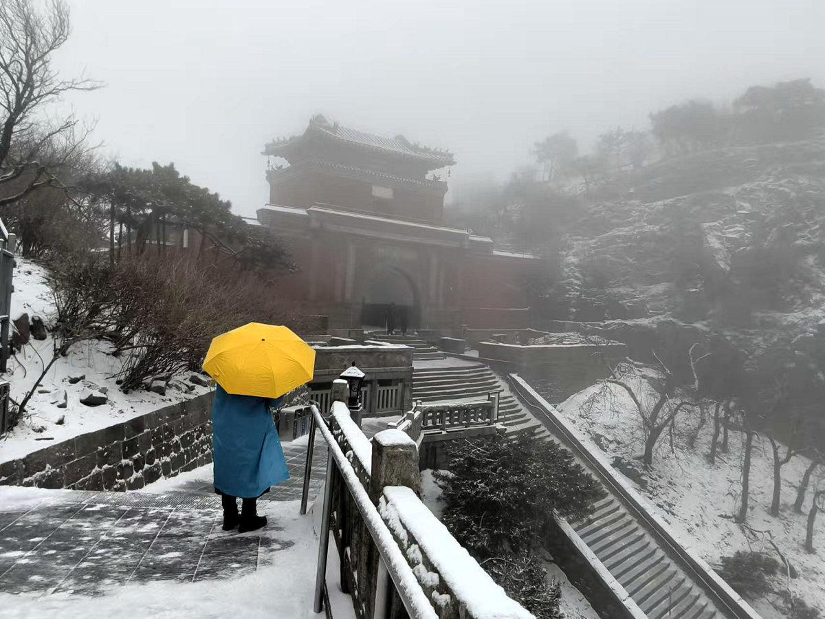 这场初雪不仅为泰山带来了别样的美景,也为即将到来的新年增添了祥瑞的气息。