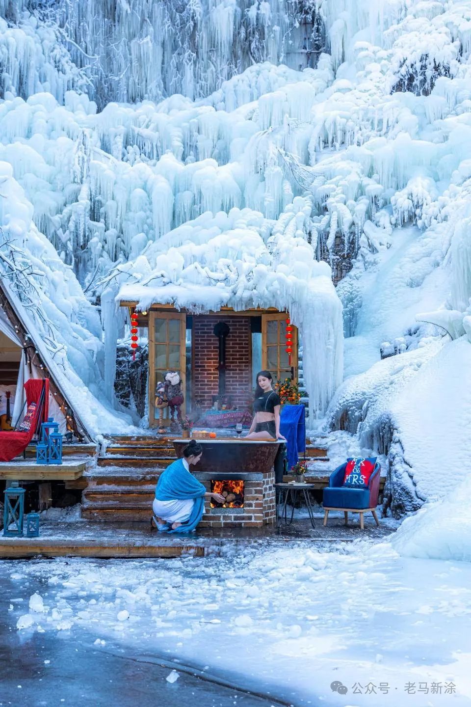 低温造就了济南南部山区九如山的冰瀑奇观。山上本来气温就低,往日流水潺潺的瀑布,凝结成叠叠冰笋,层层复垂,约百米长的冰瀑悬挂在崖壁上,琼妆玉砌,晶莹透明。更有意思的是,冰瀑下面架起一口大锅,填上木柴,“铁锅炖自己”就成了网红打卡地。东北有铁锅炖大鹅(这个“鹅”应念ne,才显得地道),很少见铁锅炖自己,要是里面再加点八角、大料,出浴后肯定香气扑鼻。乾隆爷的香妃可能就是这么历练出来的,不信你也来试试!