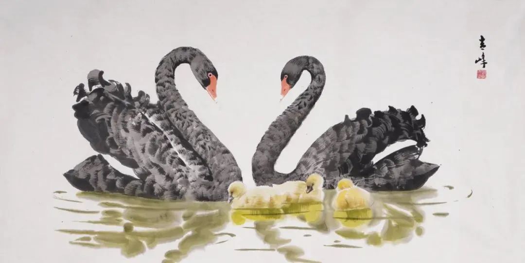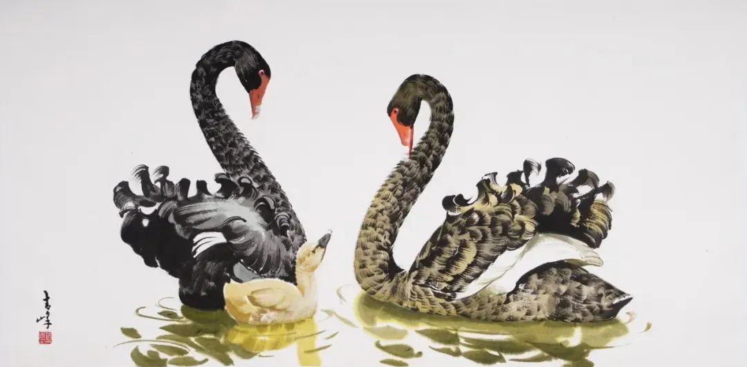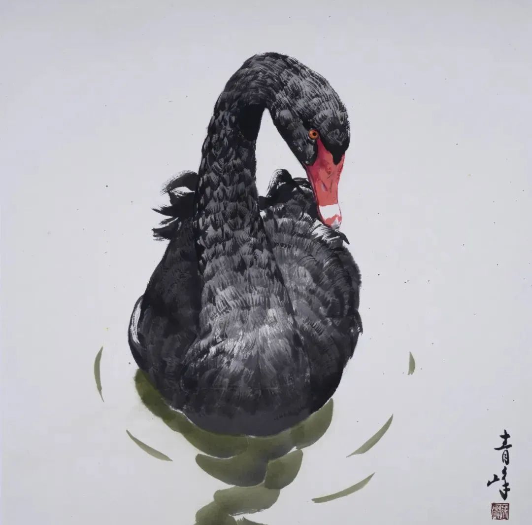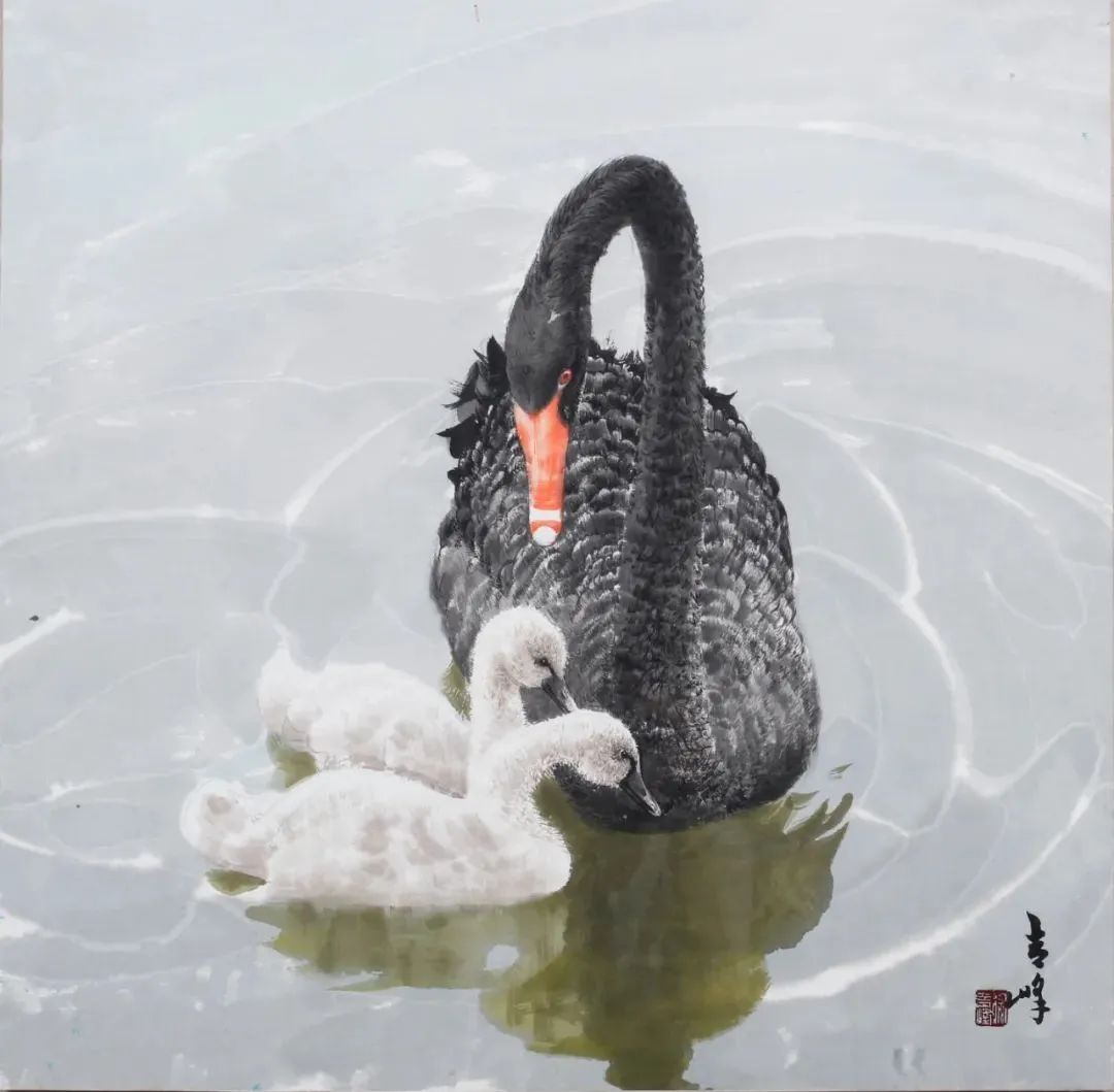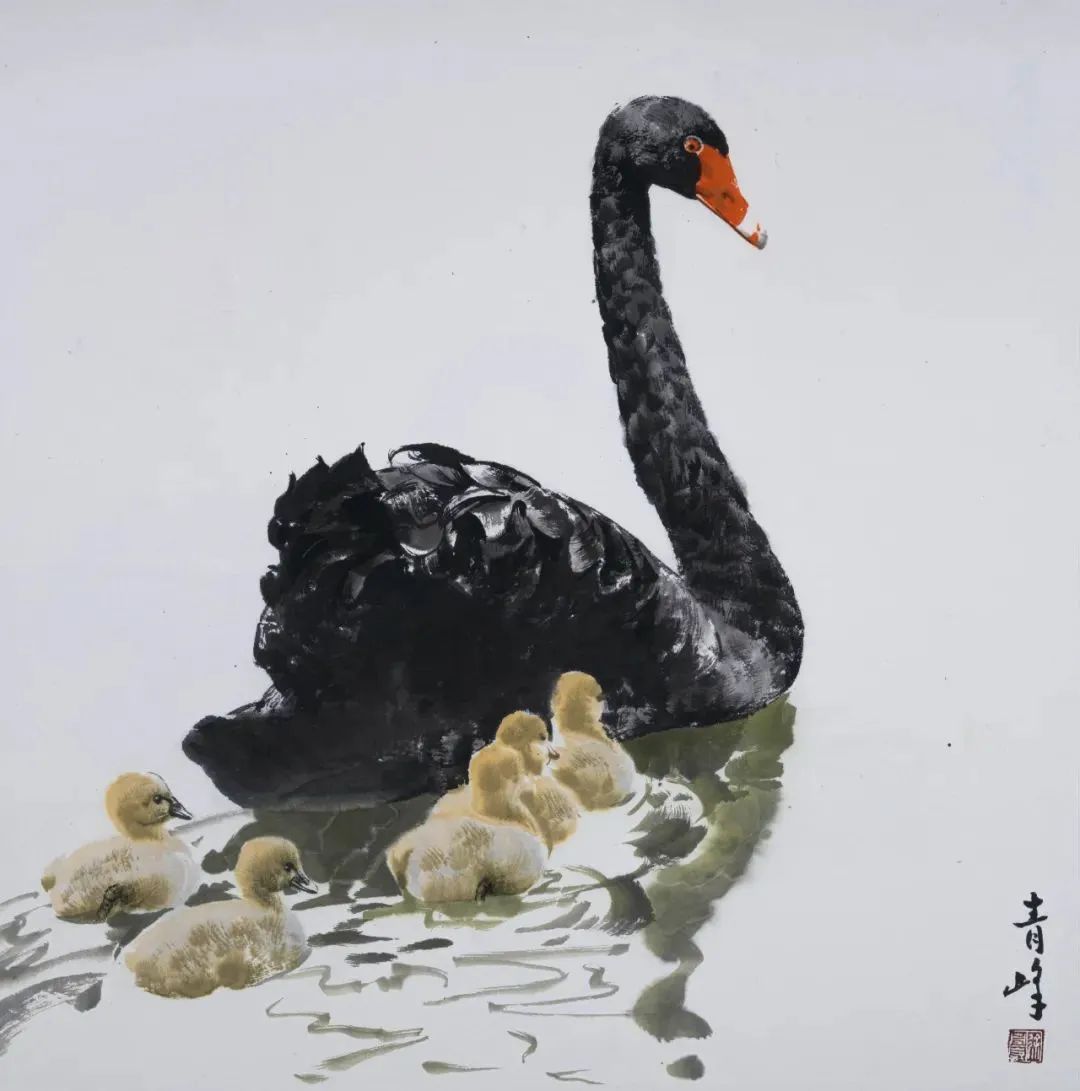 徐青峰的天鹅系列、松鹤系列、大鸡系列。与大众眼中的中国花鸟画常态明显有别。众多国画家往往都在以“写”的审美观念及习惯“写”画,而徐青峰没有那么多书法用笔的“规矩”或“讲究”,所注重的是造型之美、质感之美以及他所理解所追求的绘画之美。