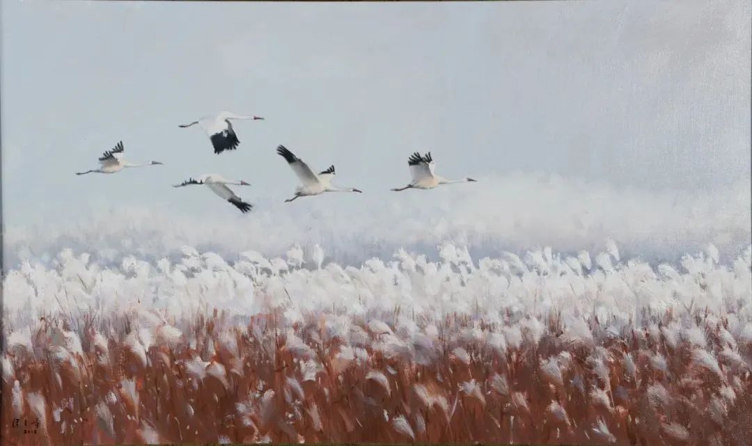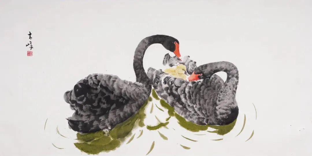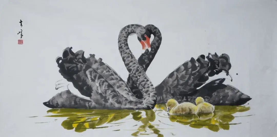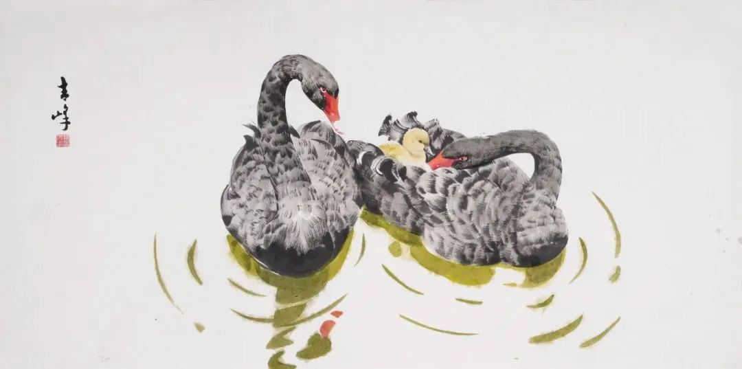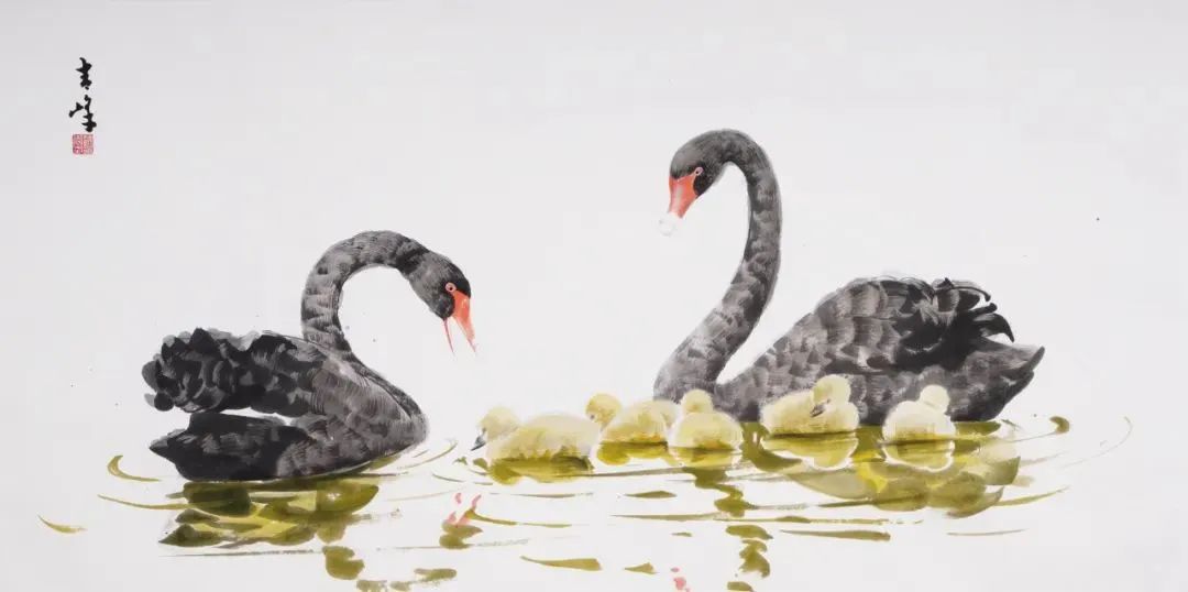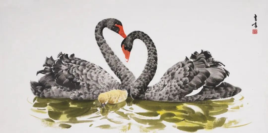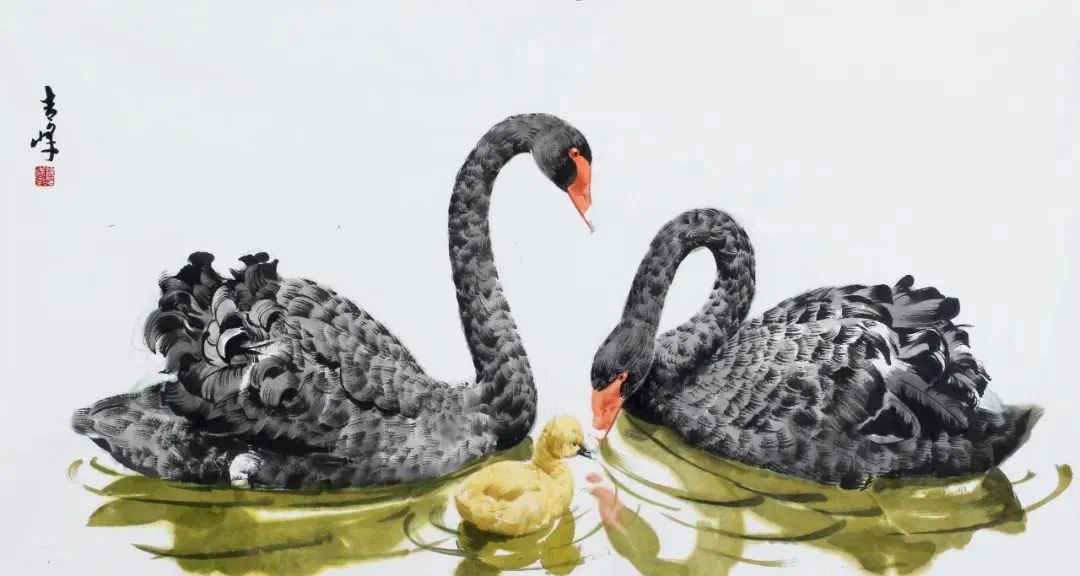 徐青峰的天鹅系列、松鹤系列、大鸡系列。与大众眼中的中国花鸟画常态明显有别。众多国画家往往都在以“写”的审美观念及习惯“写”画,而徐青峰没有那么多书法用笔的“规矩”或“讲究”,所注重的是造型之美、质感之美以及他所理解所追求的绘画之美。