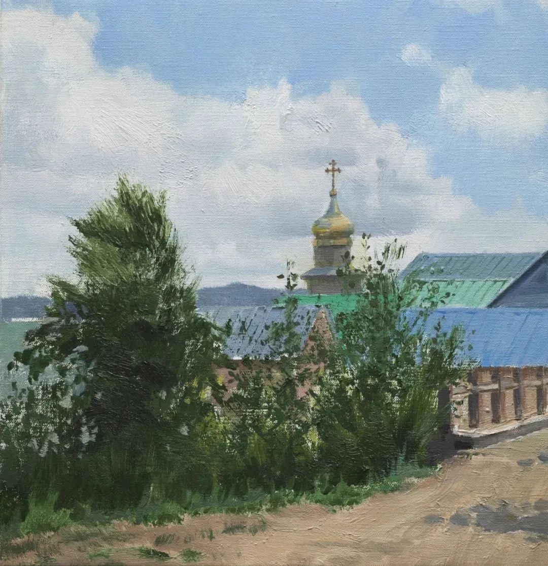《有教堂的风景》布面油画 38.5x36.5cm 2019年