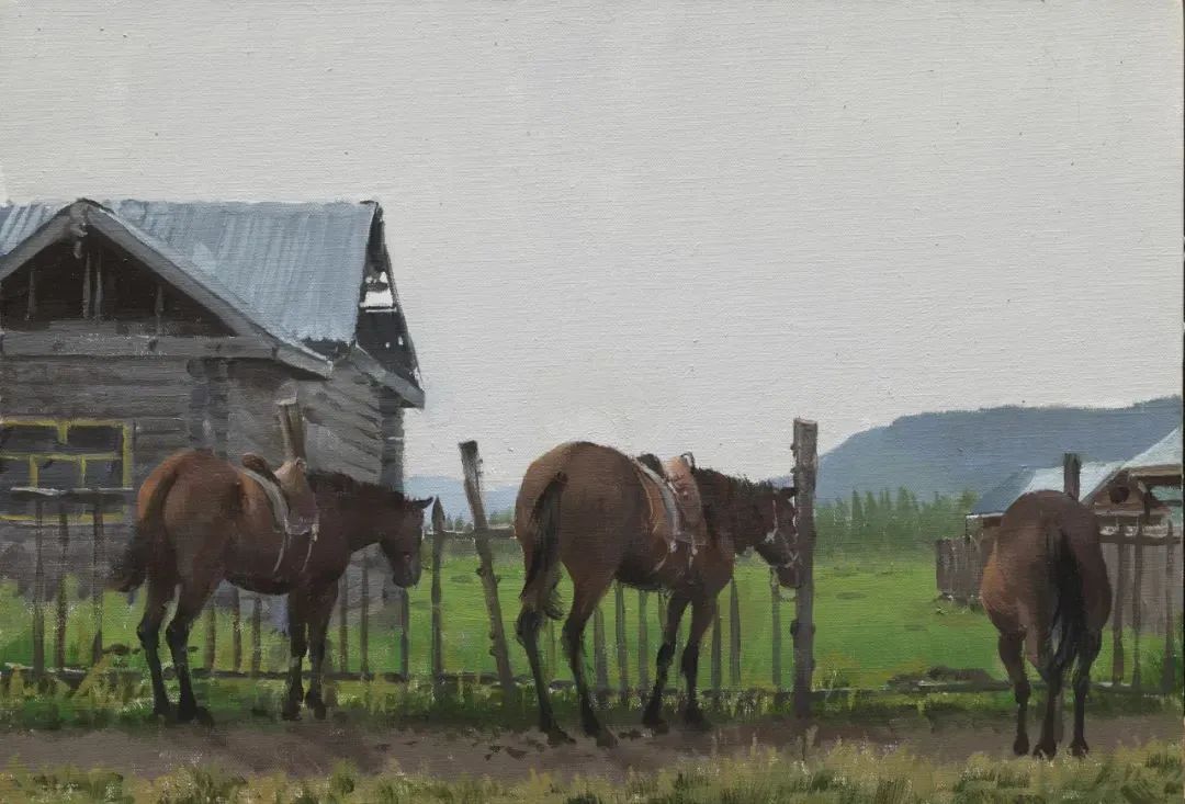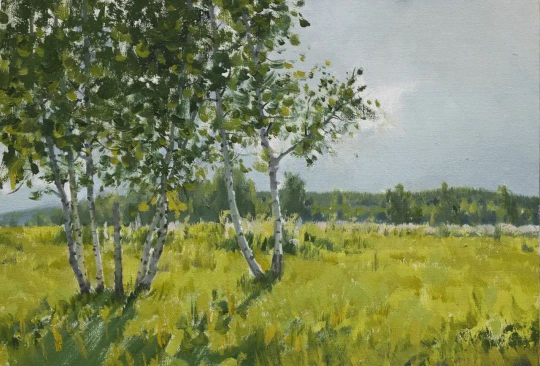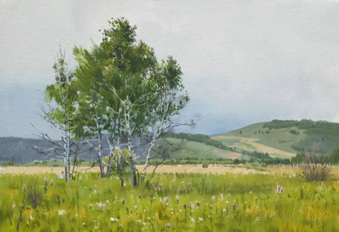 《草原上的白桦树》布面油画 38x55cm 2019年